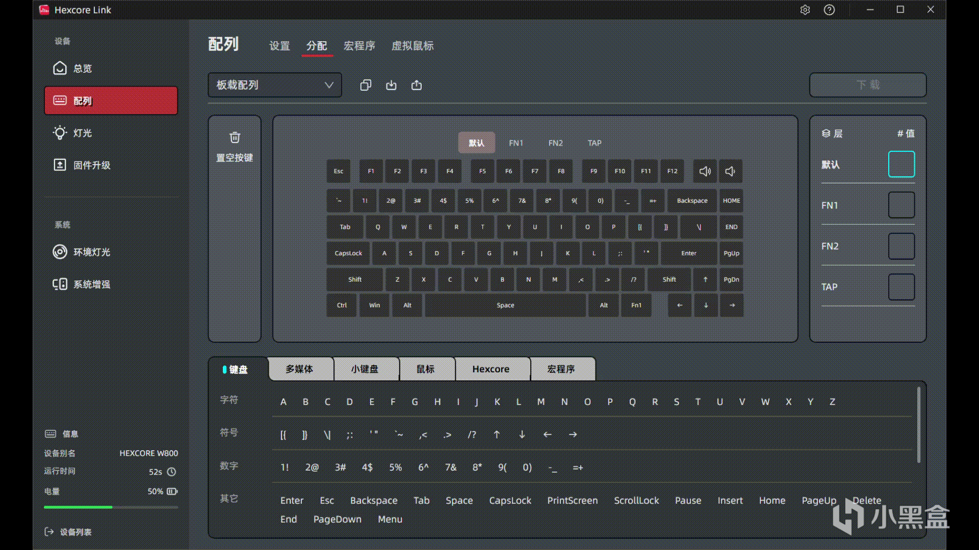 第二個頁面就是剛剛介紹的改鍵,但不同於正常的驅動改鍵,這種改鍵更類似於客製化鍵盤中的VIA,但不需要JSON文件,打開驅動就可使用。可以改的按鍵也很多,而且包括兩個FN層以及一個tab層,這個不用不知道,用完就是真香。