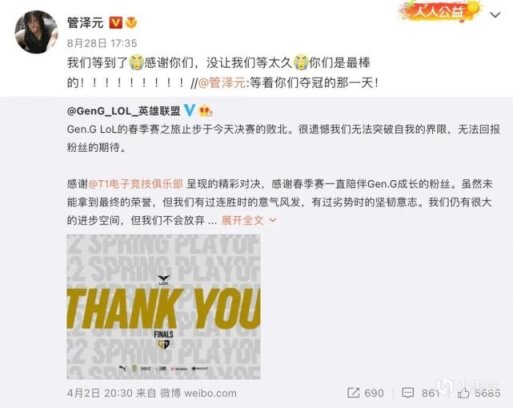 众所周知,管泽元是三星战队皇冠哥的头号粉丝,今年LCK季后赛GenG直接3-0碾压大飞老师带队的T1,成功拿到夏季赛冠军,管哥接受采访说,“很激动,有一种这么多年队伍终于达成目标了的激动,但激动之余感觉又在情理之中,因为比赛前大部分人包括我都预测到了这个结果。”
