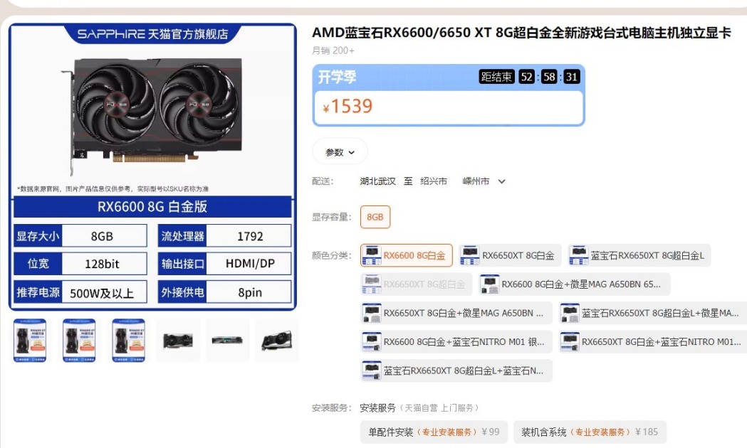 而RX6600丐版全新只需要 1500左右還比3050便宜