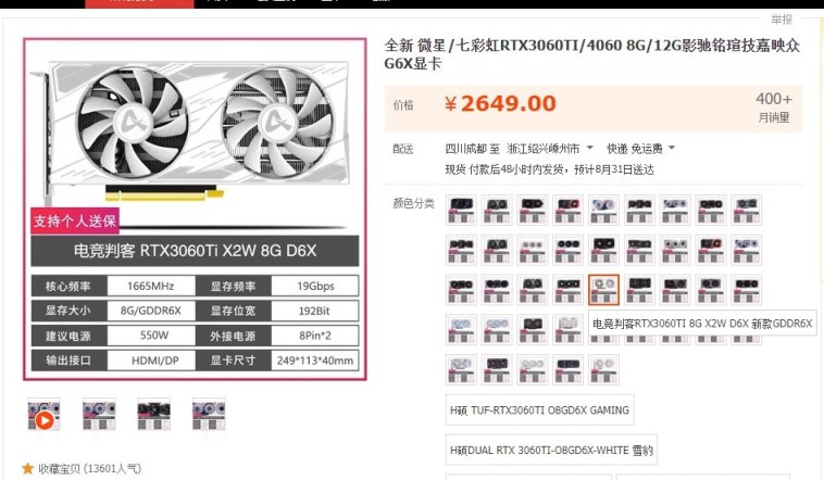 第二款:3060TI G6X內存版 價格2700左右 理由(提升了一個內存價格猛漲,實質遊戲性能提升微乎其微)
