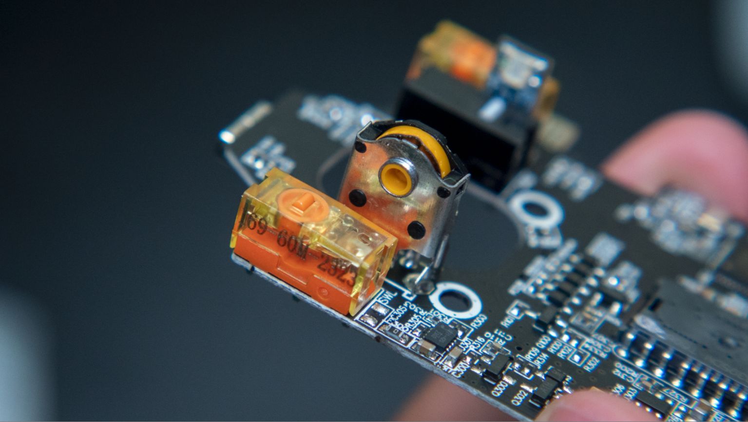 編碼器採用TTC金編碼器,200W圈壽命,中鍵微動採用國產歐姆龍白點,型號爲D2FC-F-7N,500W次壽命。