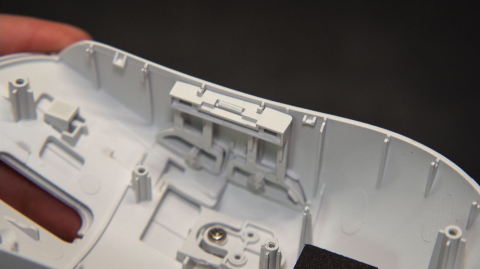 在5月時我曾經吐槽過達摩鯊M3的側裙剛度原因,M3的側裙稍稍用力一捏就會觸發側鍵,對我來說是完全不可用的情況。這次M3s因爲體積縮小,外殼厚度和模具內部支撐設計優化,5月時提到的側裙剛度問題已經完全解決。硬較真的話,兩隻手用力捏還是會有點形變的,不過誰沒事用兩隻手捏鼠標啊?