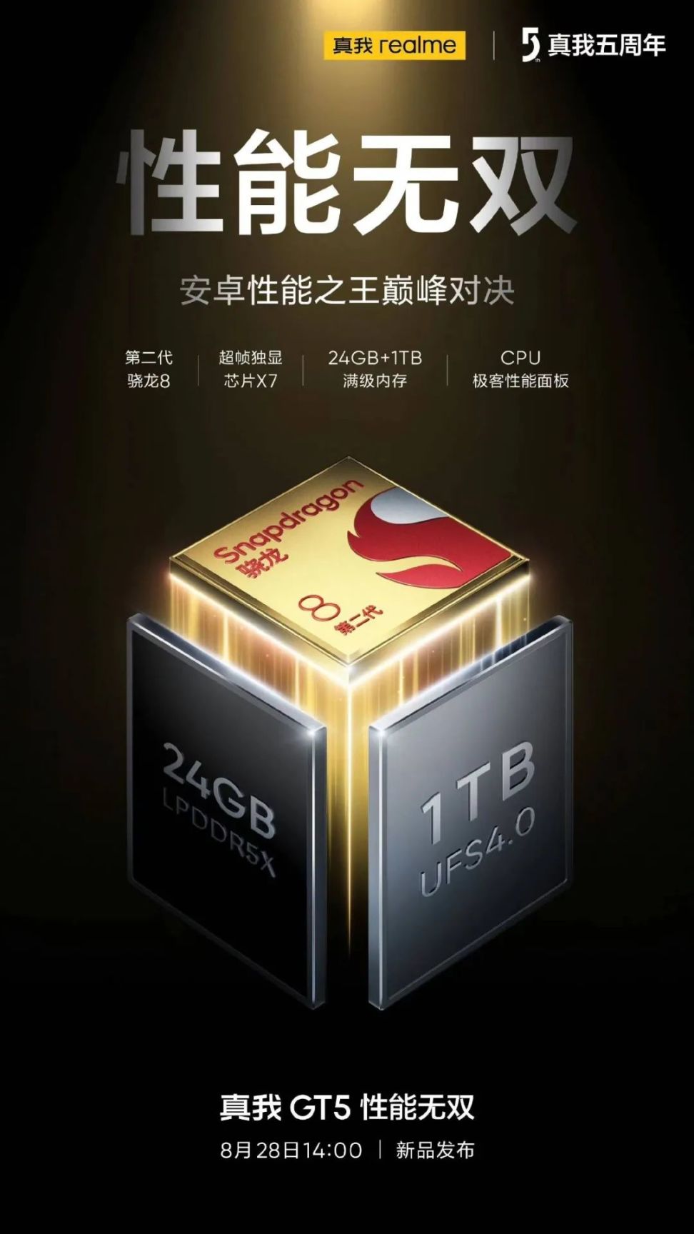 今日下午,realme真我在五周年演讲暨realme GT5新品发布会期间,正式发布了预热已久的realme GT5手机。