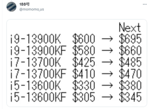 有一位网友爆料这些CPU会提价,大概平均提价15%