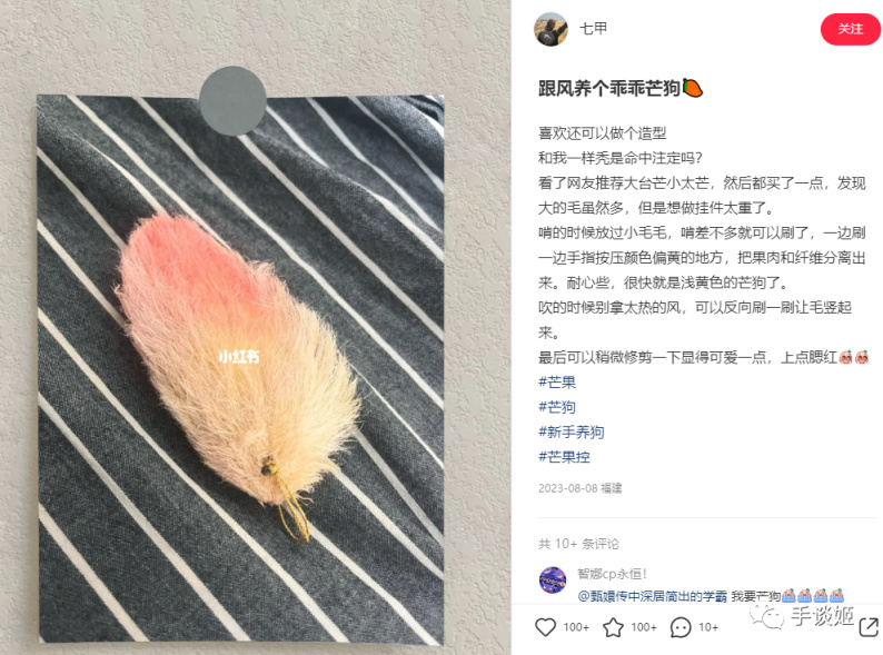 活的養不了,活的不好養,那麼退而求其次,一個自制的小小的芒狗,便成爲了新的選擇。它需要投入一定時間,但不多,它也許會失敗,但損耗不大,而且失敗了還可以反覆嘗試,跟做一次手工,打一局遊戲沒什麼區別,它也很可愛,只要願意給它做造型,它是獨一無二的,能提供情緒價值,它可以放在家中,可以展示給朋友與網友,它只是靜靜待在那裏,不需要投入更多精力,不用擔心會離開……