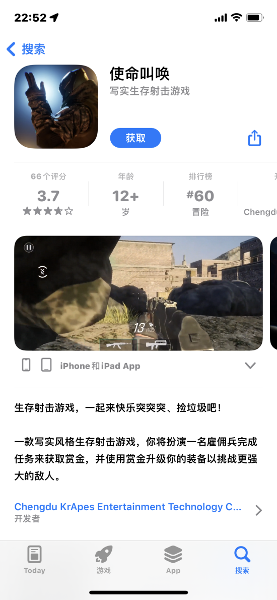 《使命召唤19》还没有正式发售,App Store里却和《艾尔登法环》发售时一样,已经有了山寨手游。