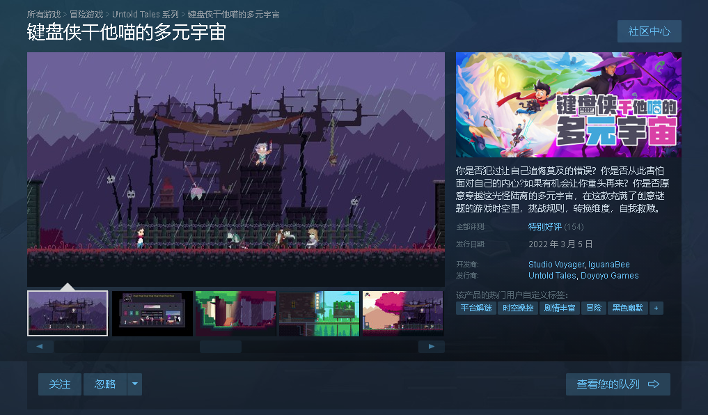 《键盘侠干他喵的多元宇宙(What Lies in the Multiverse)》是一款将横版探索与“平行世界”这一题材相结合的高分解谜游戏,自发行以来获得了96%的特别好评。