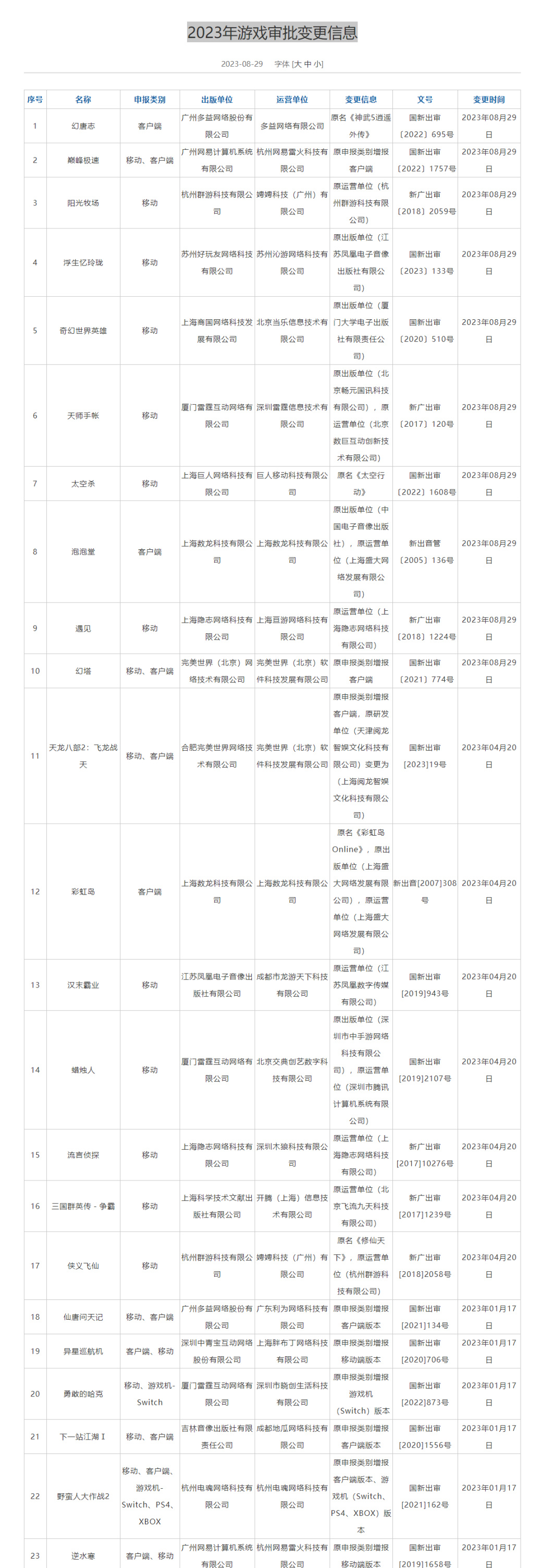 2023年游戏审批变更信息公布 2023-08-29 PC游戏 今日,2023年游戏审批变更信息公布了,一起看看吧。 更多游戏资讯请关注:电玩帮游戏资讯专区 电玩帮图文攻略 www.vgover.com
