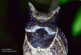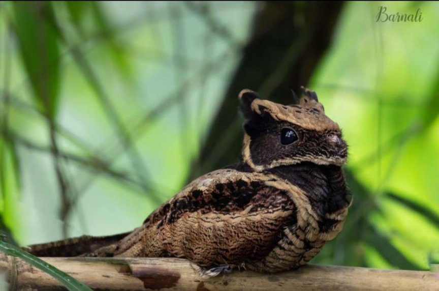 这些夜鹰头上长着两簇奇特的羽毛,看起来就像有耳朵一样,。
