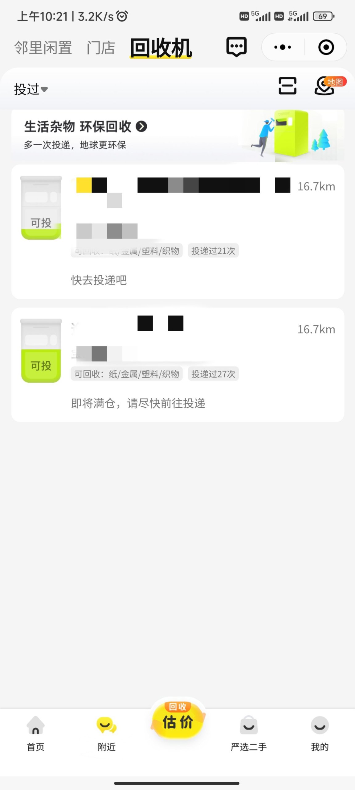 如果附近没有,可以点地图看看哪里有,上海这种回收机覆盖挺广的。