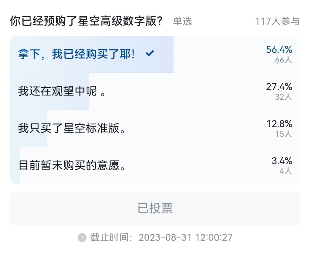 最后,我会在近期再为盒友们出一期《星空》的相关资讯,感谢您的点赞投币和关注。爱你哦~❤