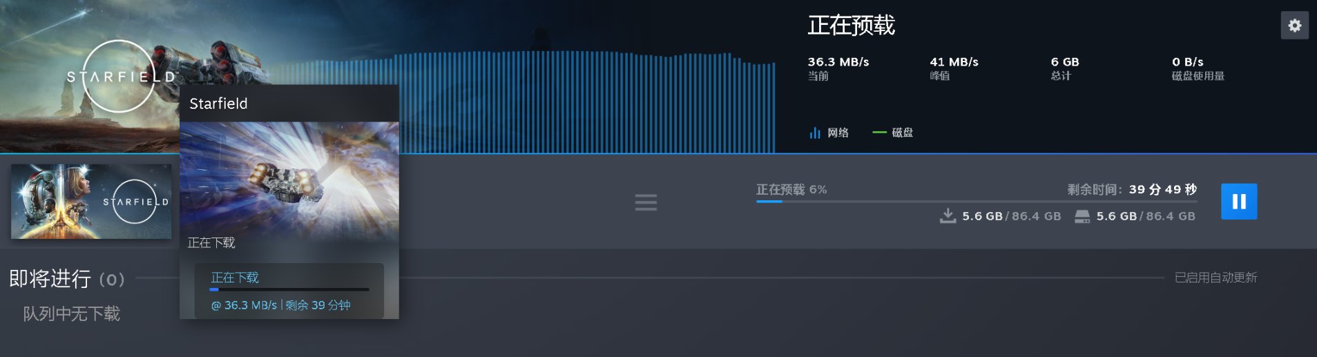 2023年8月30日上午8点(北京时间),Steam平台已开启了星空(Starfield)的预加载。