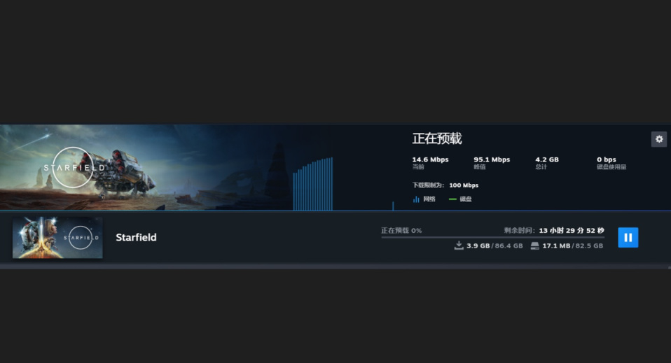 太空科幻巨作《星空》已经在Steam平台开启预载,根据下载页面的显示,预载所需空间为86.4GB,不包括首日补丁。(根据昨日Xbox游戏新闻推主Idle Sloth透露,PC版首日补丁大小为13.4GB)