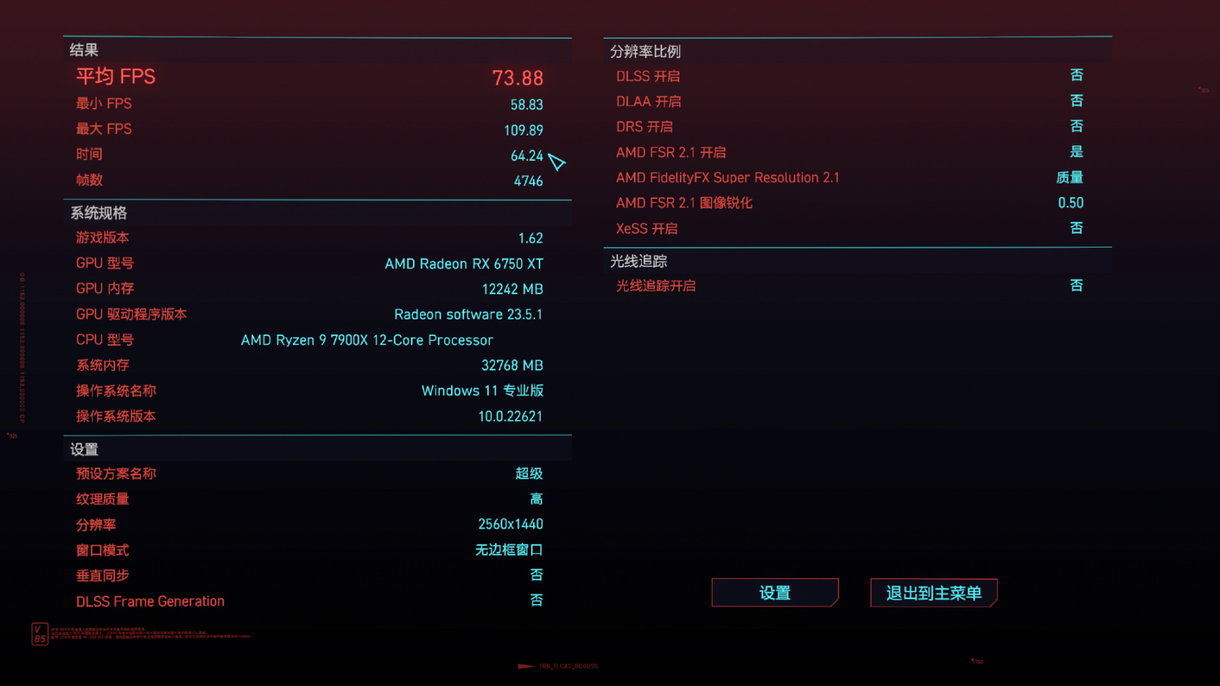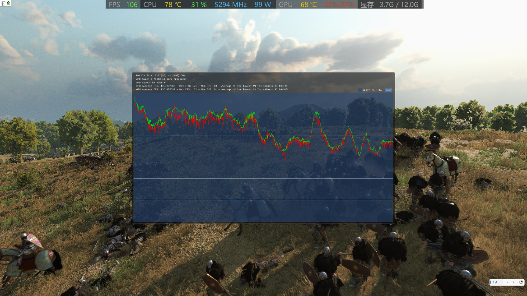 平均帧数125/秒,接近了2K144hz显示器上限,可以非常顺畅的运行该游戏。