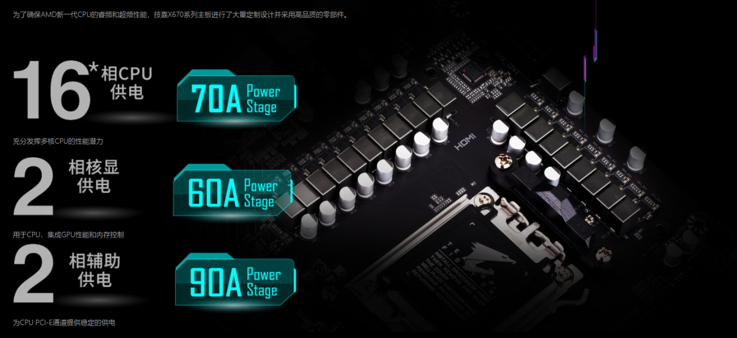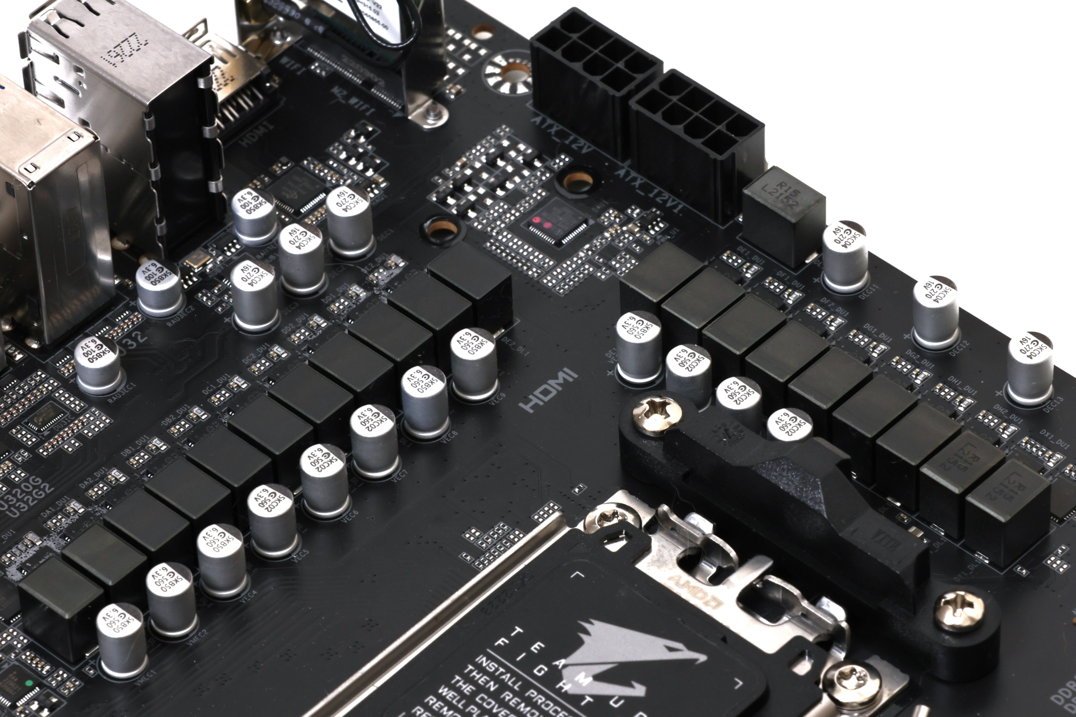 采用了最高规格 8+8 PIN实芯针脚供电插座,可以看出技嘉是很用心的把料堆在了CPU供电部分上。