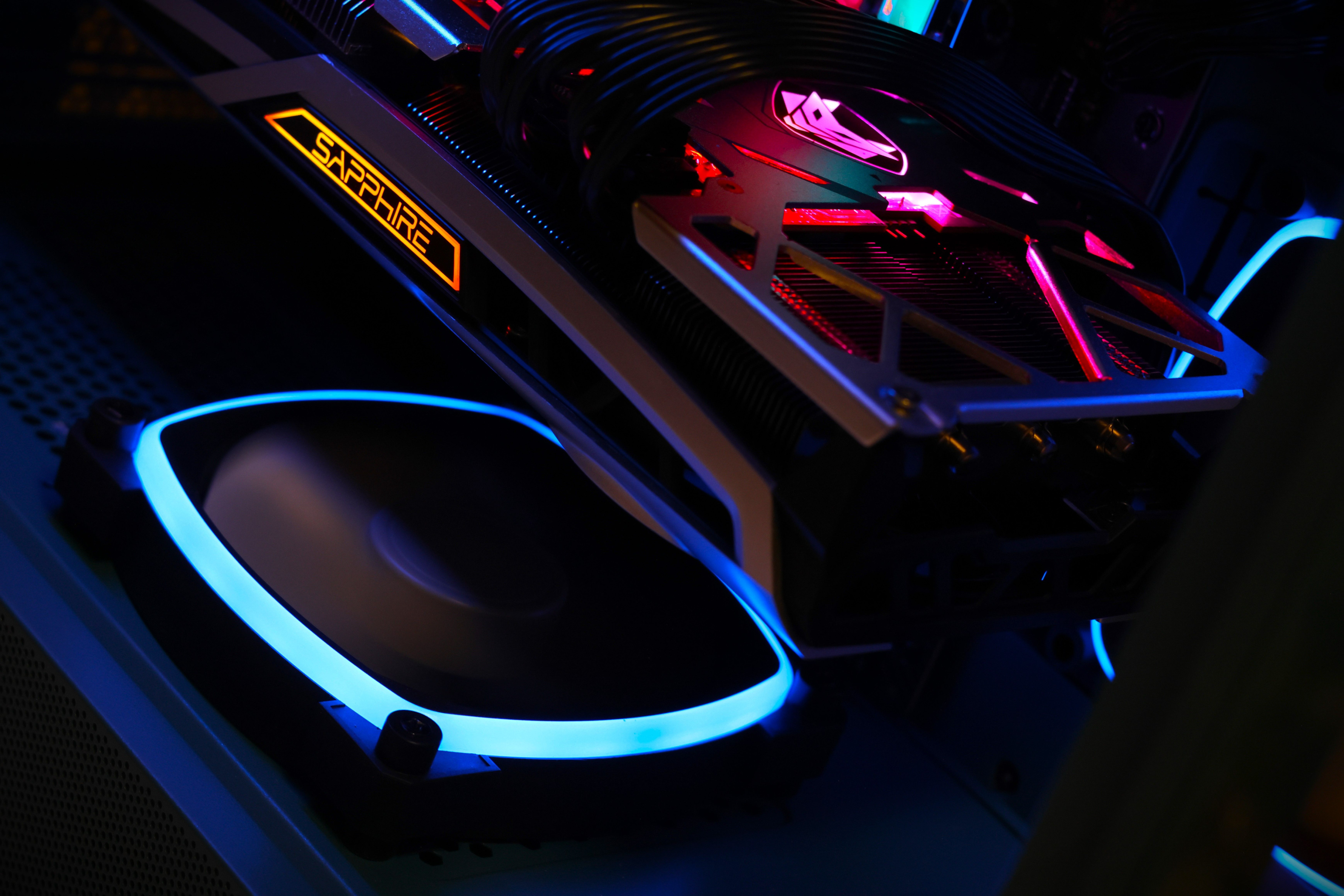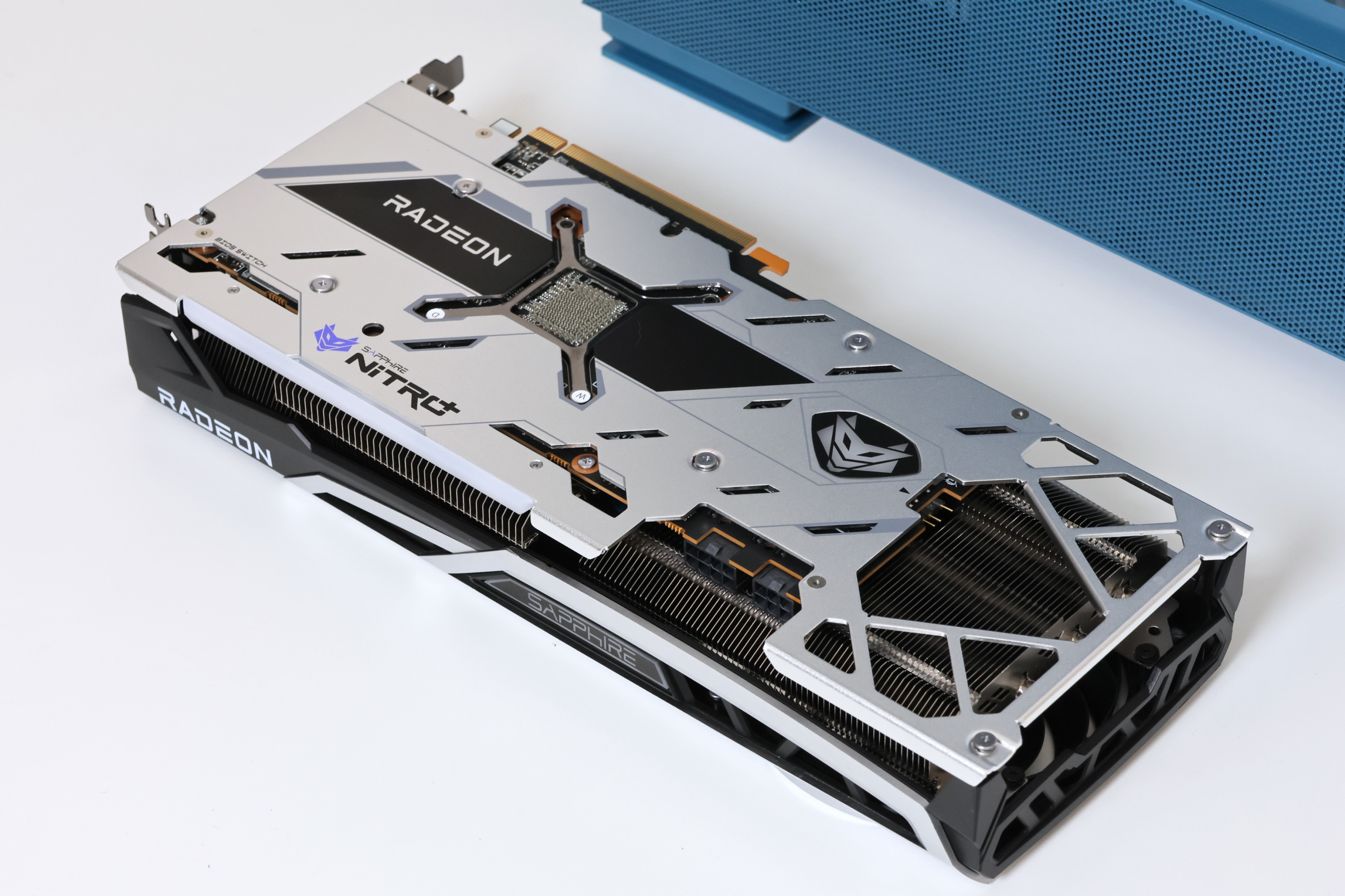 背板采用全铝材质,与显卡PCB连接处贴有导热垫,可以起到散热的作用,背板与显卡侧面LOGO处可以发光,支持通过蓝宝石TriXX软件控制灯效,内部散热器搭载了4根镀镍处理的复合式热管与波浪形&V形组合的散热鳍片,波浪造型的散热鳍片设计,减少了风进入散热片模组时的摩擦,可以降低风噪,V形鳍片可加速并集中GPU週围的气流, 从而有效的将热能散出。