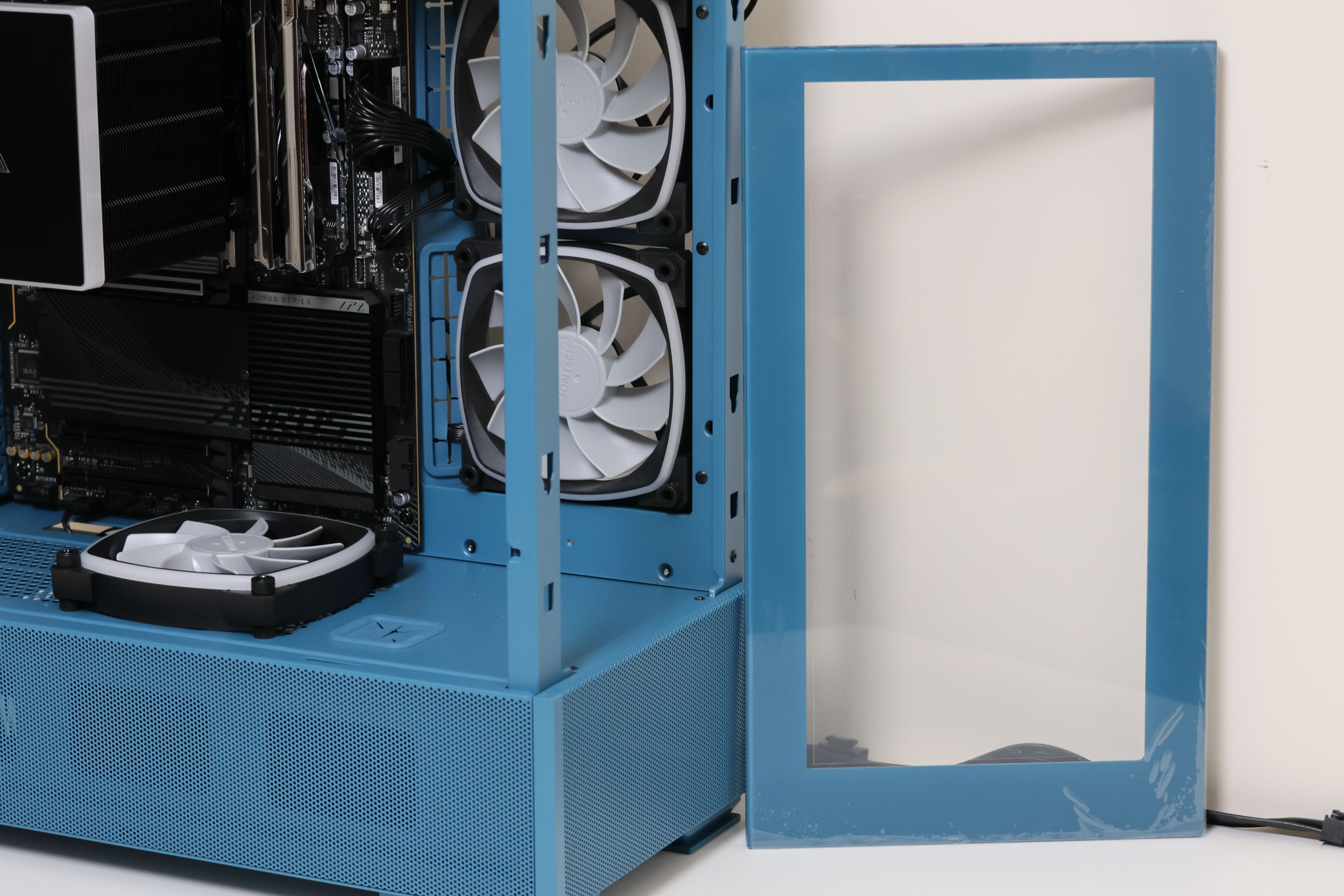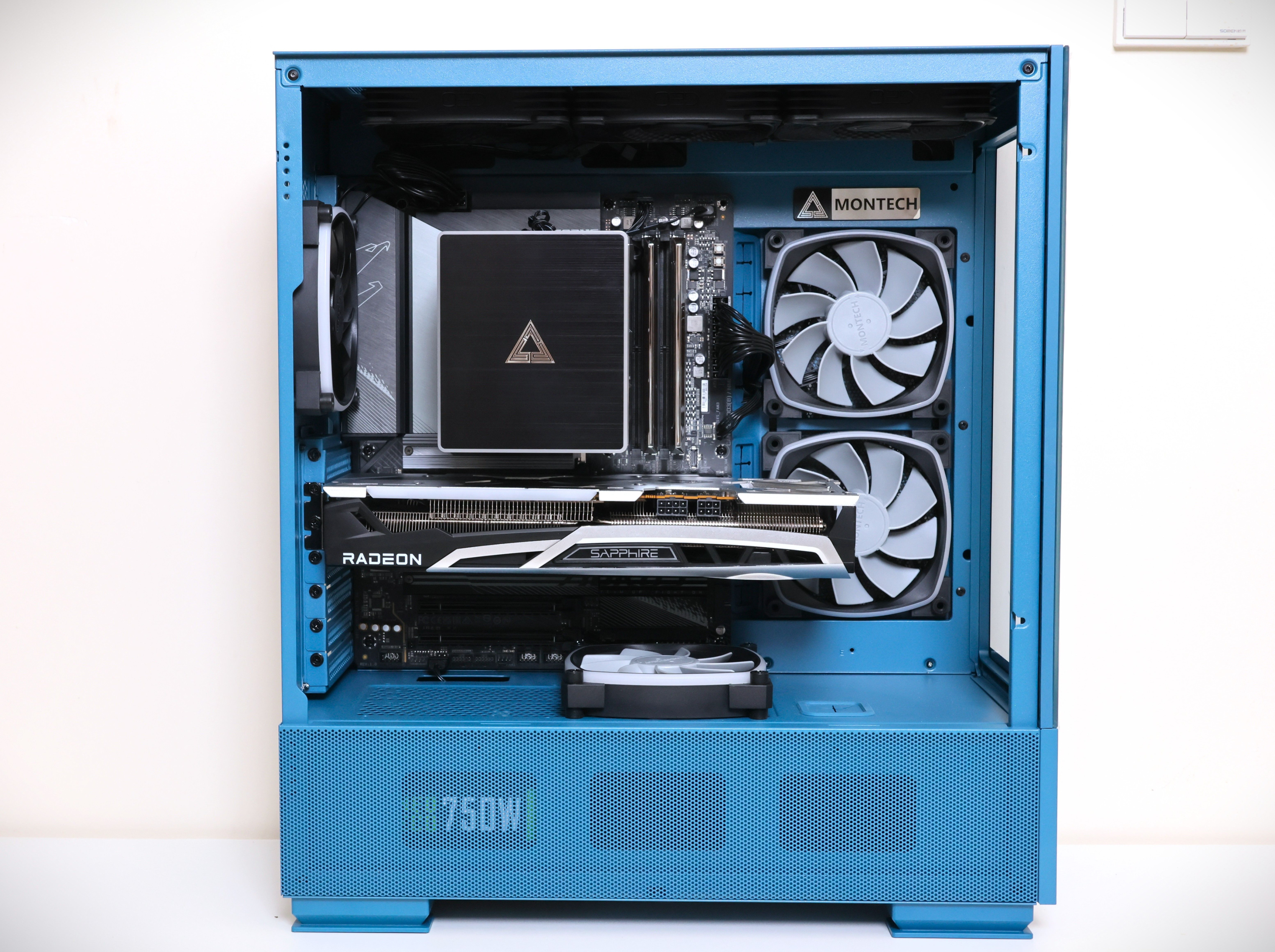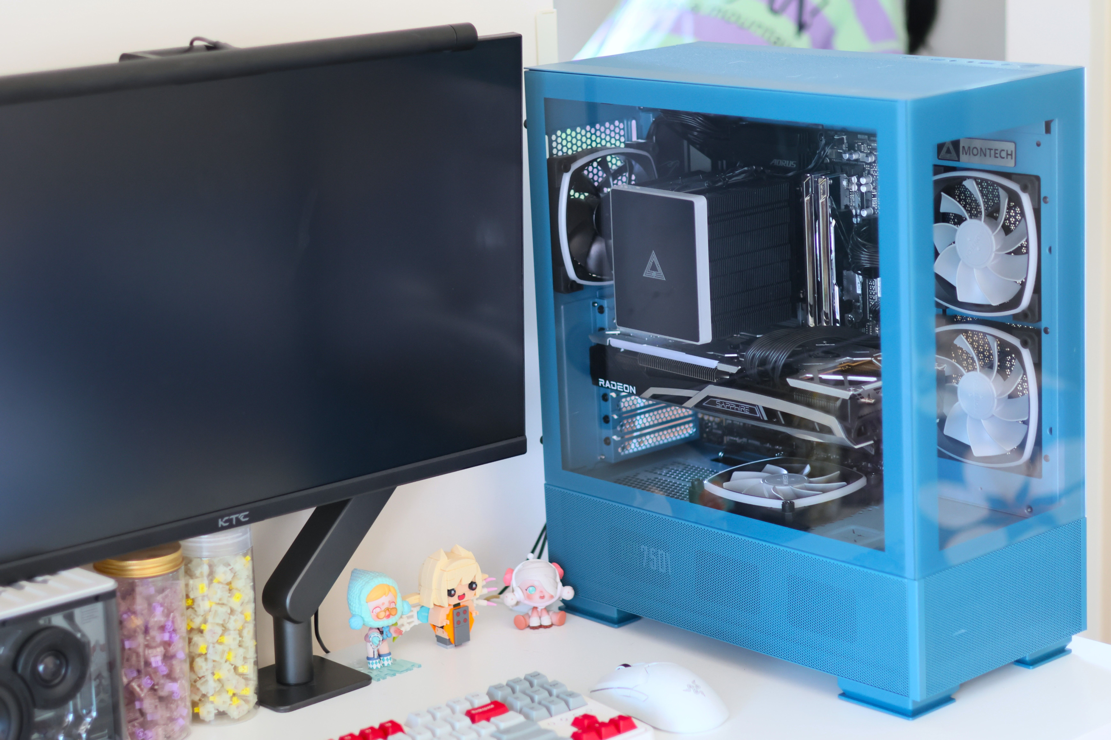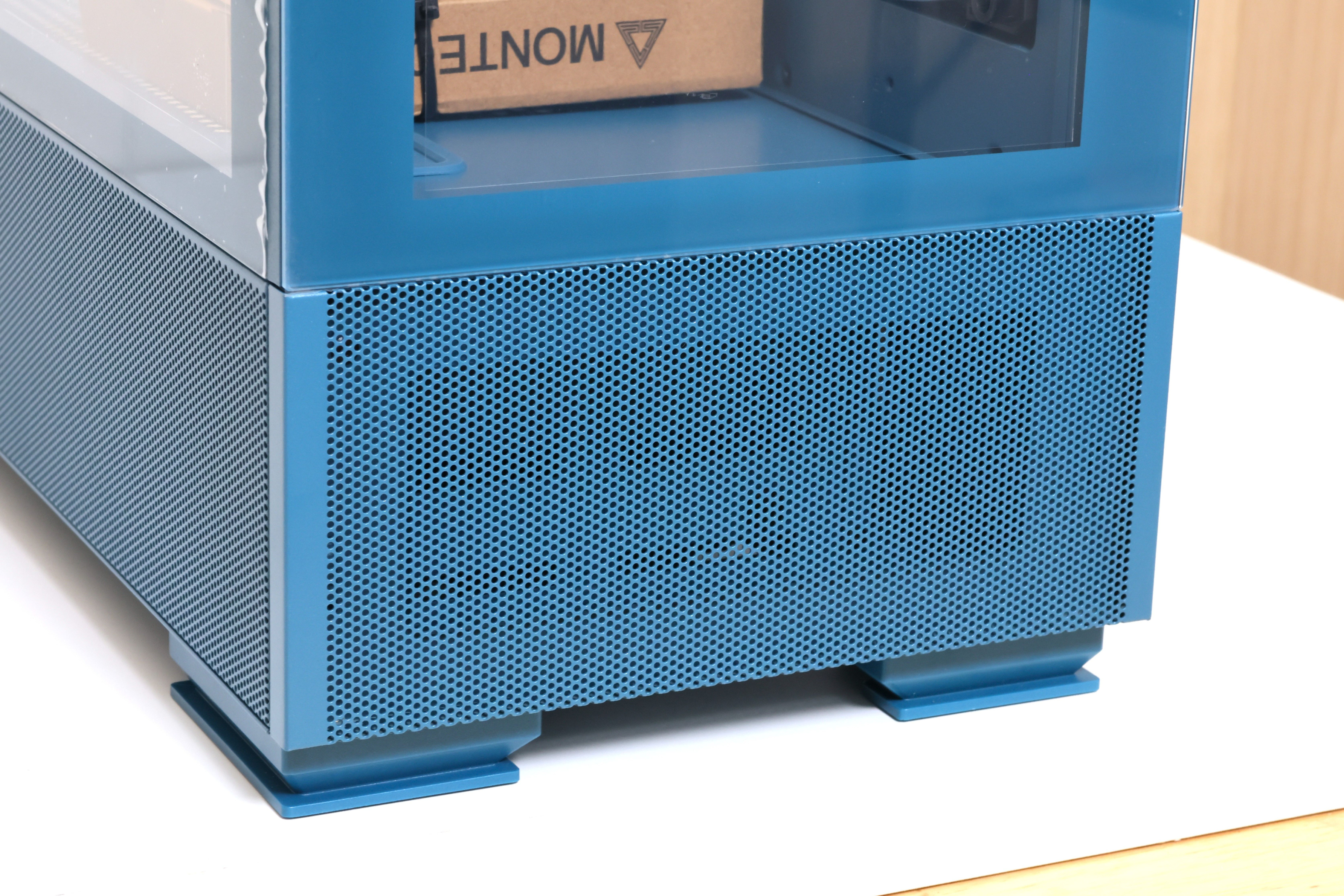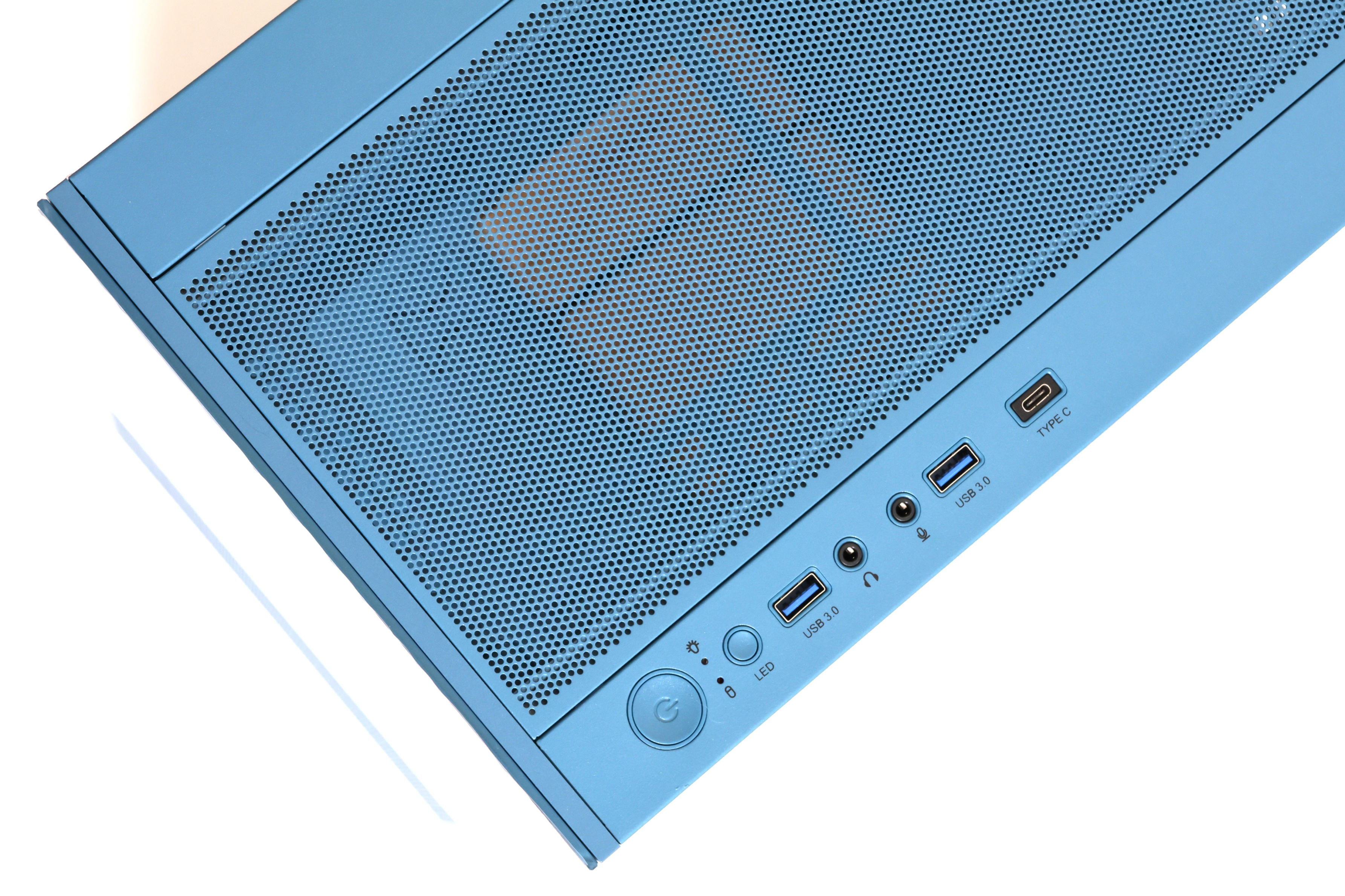 在白色/黑色海景房机箱遍地的时代,该品牌的机箱设计颇有特色,蓝色也是一个非常独特的选择(搭配蓝戟显卡更合适)。