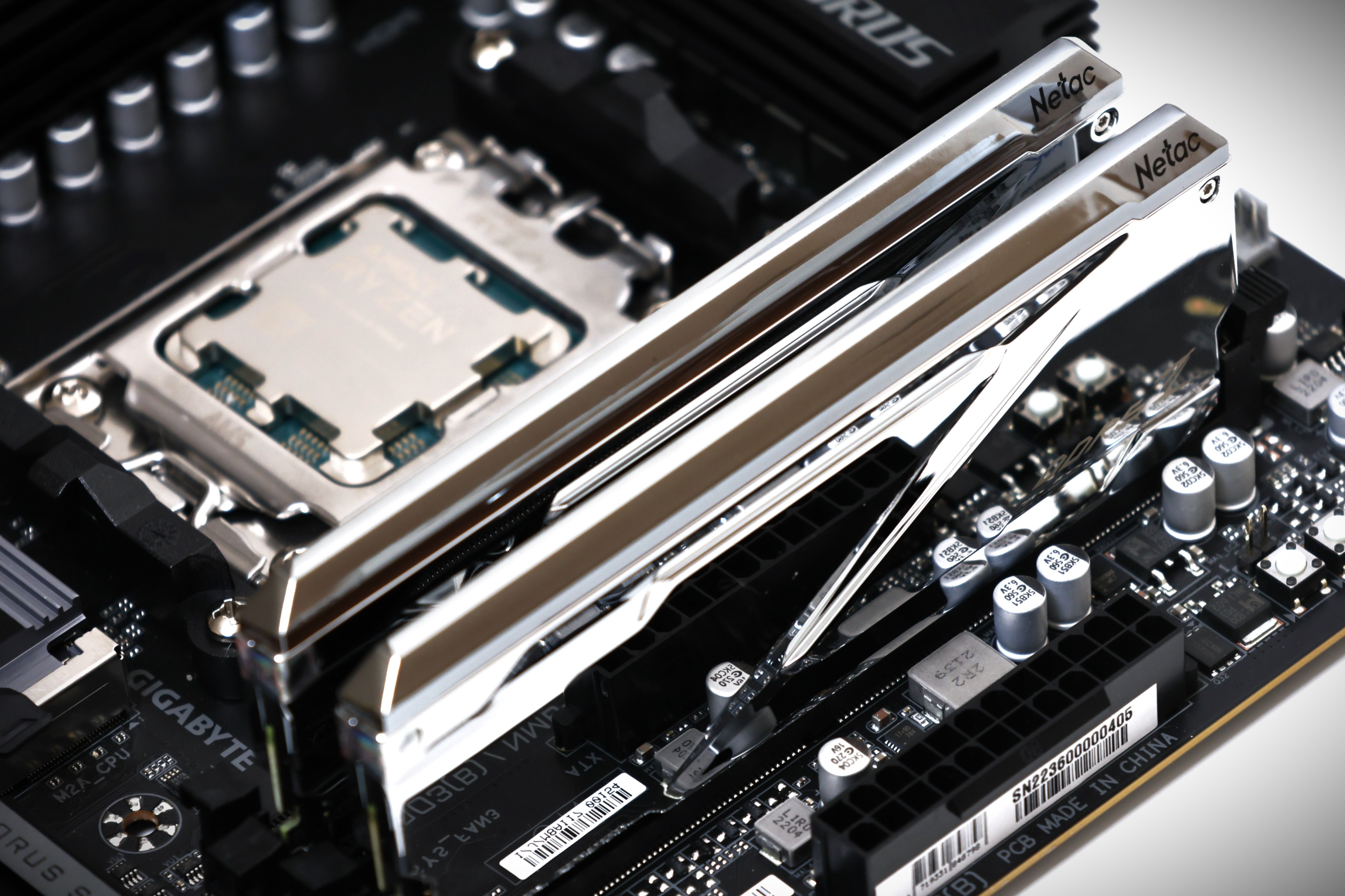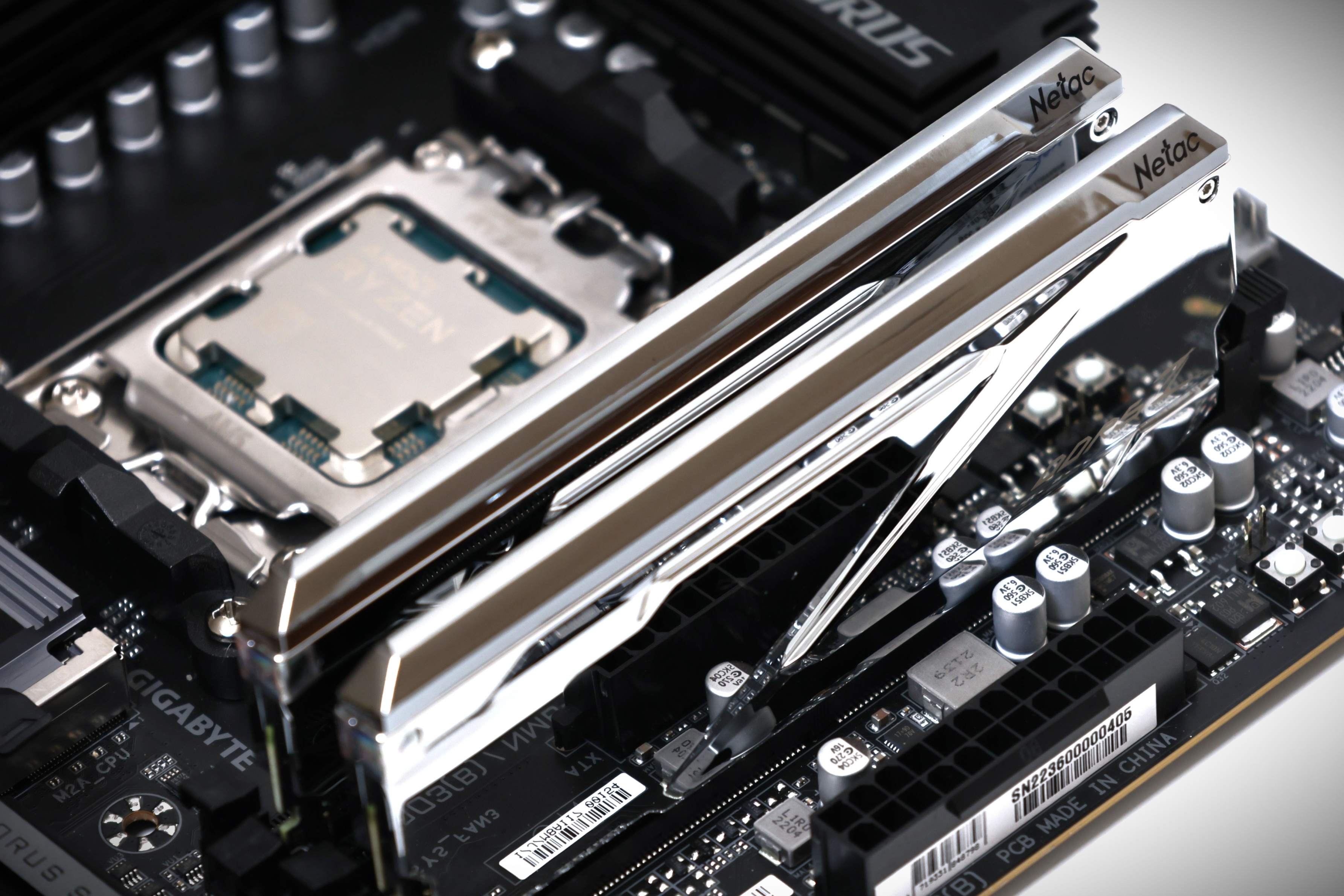银色电镀效果非常美观,内存的反射效果可以看到主板的元器件。