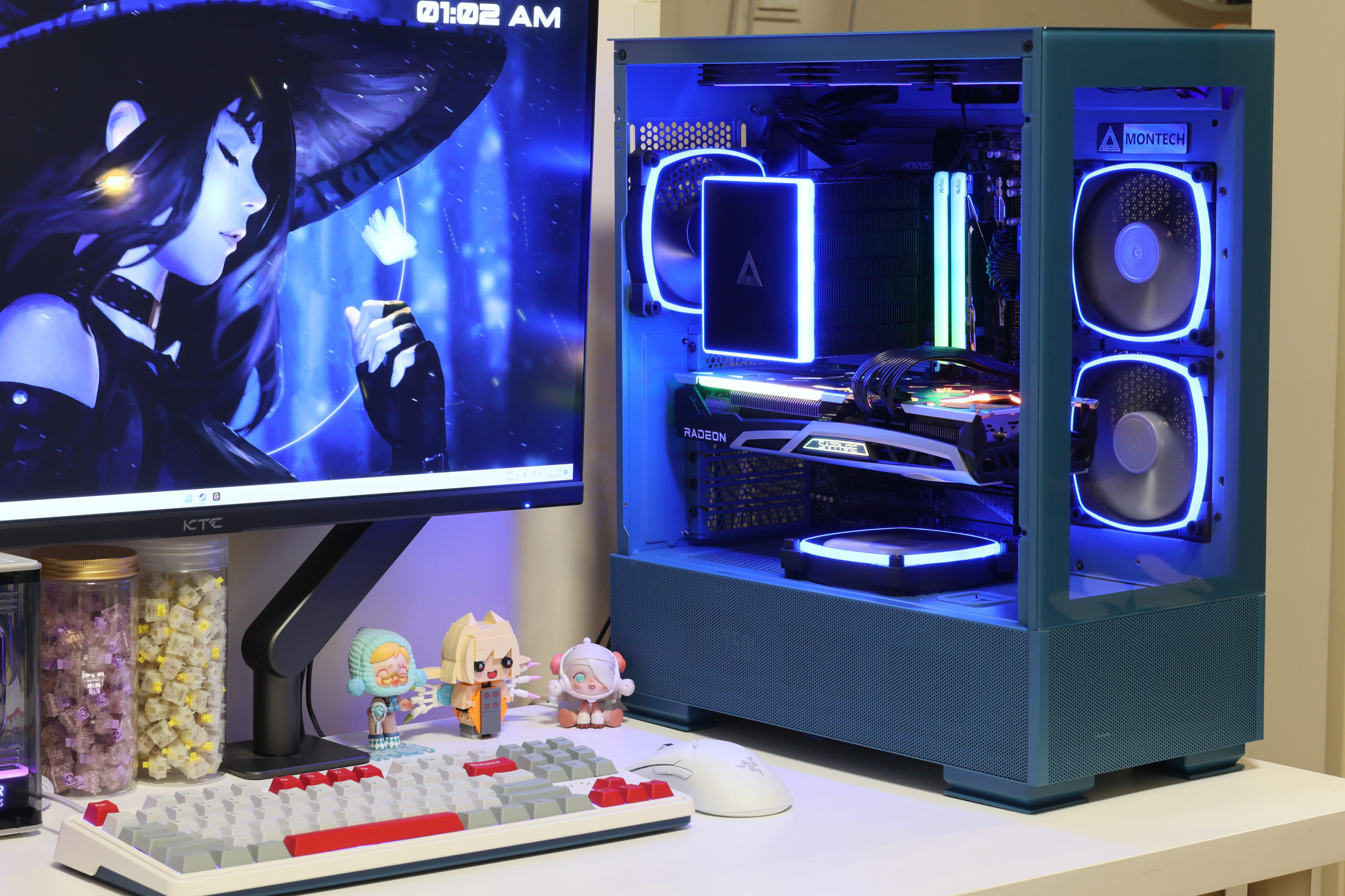 今天给各位小伙伴带来一款来自中国台湾地区的品牌,MONTECH 的SKY TWO 机箱,机箱为常规ATX结构,采用了上下分仓结构,上半部分正面、侧面为玻璃,下半部分为 MESH 金属网孔面板设计,机箱本身的三围尺寸为:43 x 21.5 x 49 cm,身形比较高挑,属于常规中塔机箱规格,几乎可以兼容市面上所有的主流硬件,颜色有摩洛哥蓝、黑色、白色三种颜色可以选择,本次装机采用了该机箱的主打颜色:摩洛哥蓝。