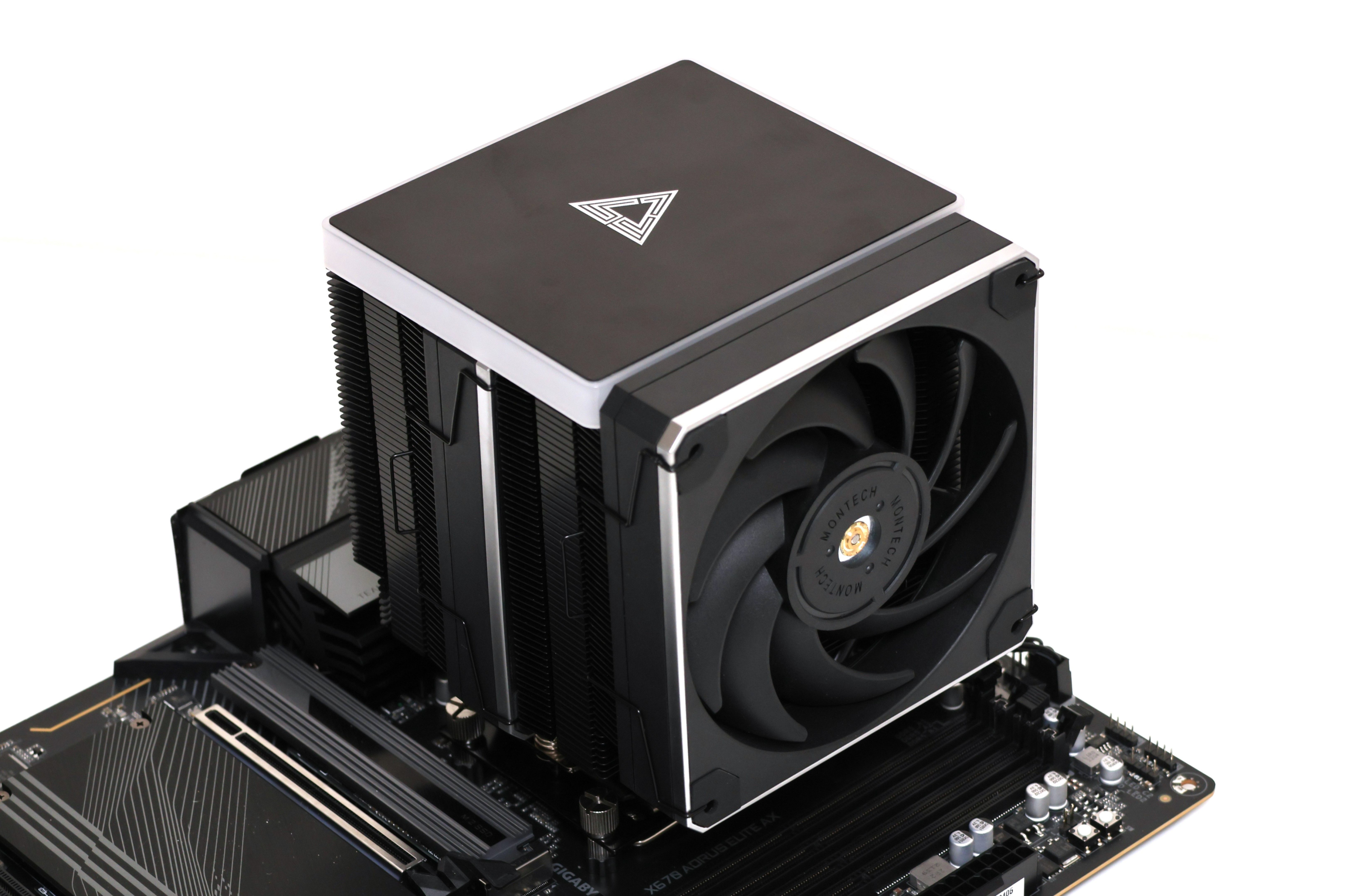 散热器同样来自于 君主/MONTECH ,该散热器搭载6根热管,双塔式设计,标称270W/TDP,搭载了两颗性能风扇,质感非常不错,整体的风格较为简约,装机搭配颜值还是比较高的。