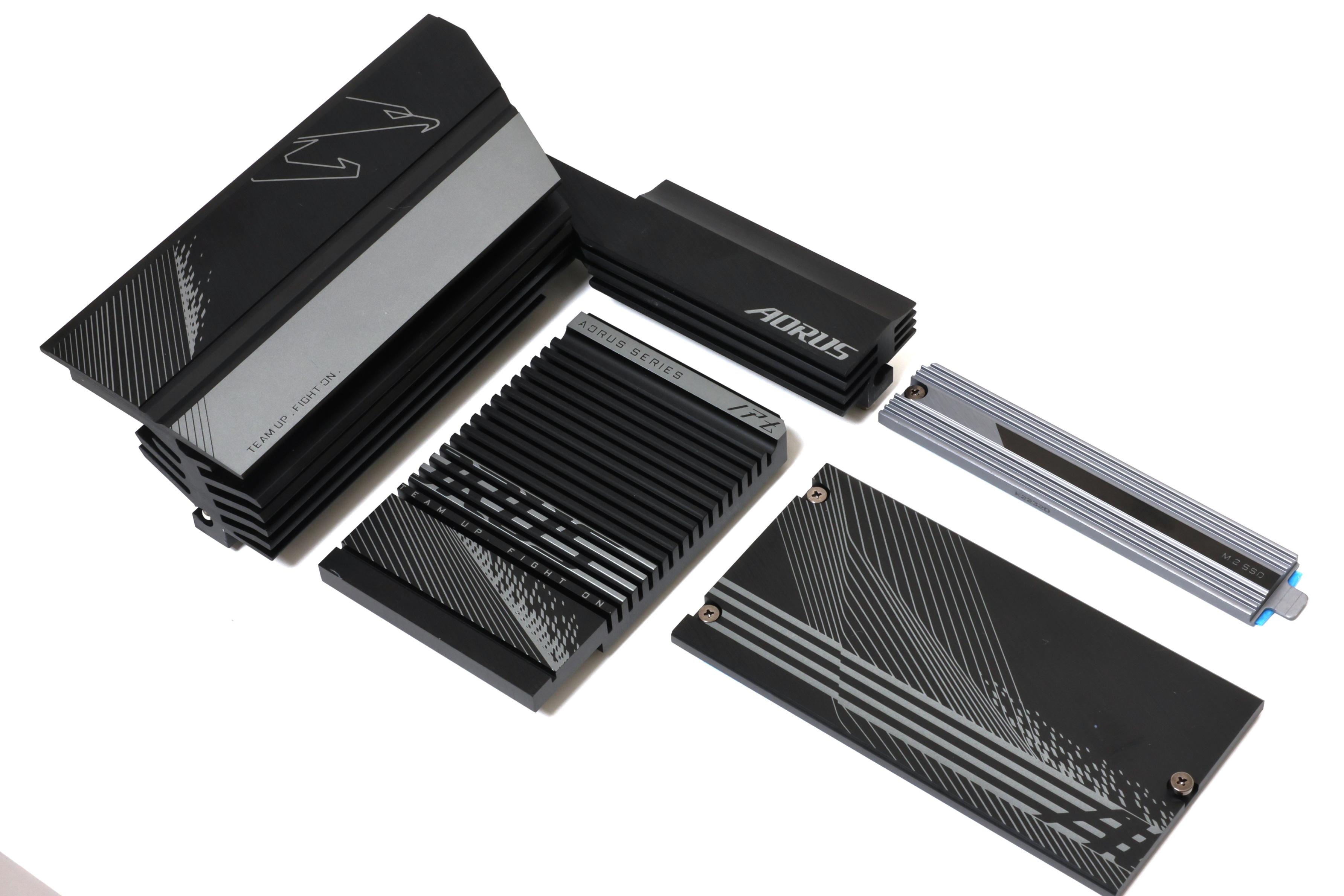 可拆卸的散热装甲共有4个部分,分别为CPU供电部分的一体式散热装甲,主板芯片的散热装甲,以及两个固态硬盘的散热装甲,分量真不轻。