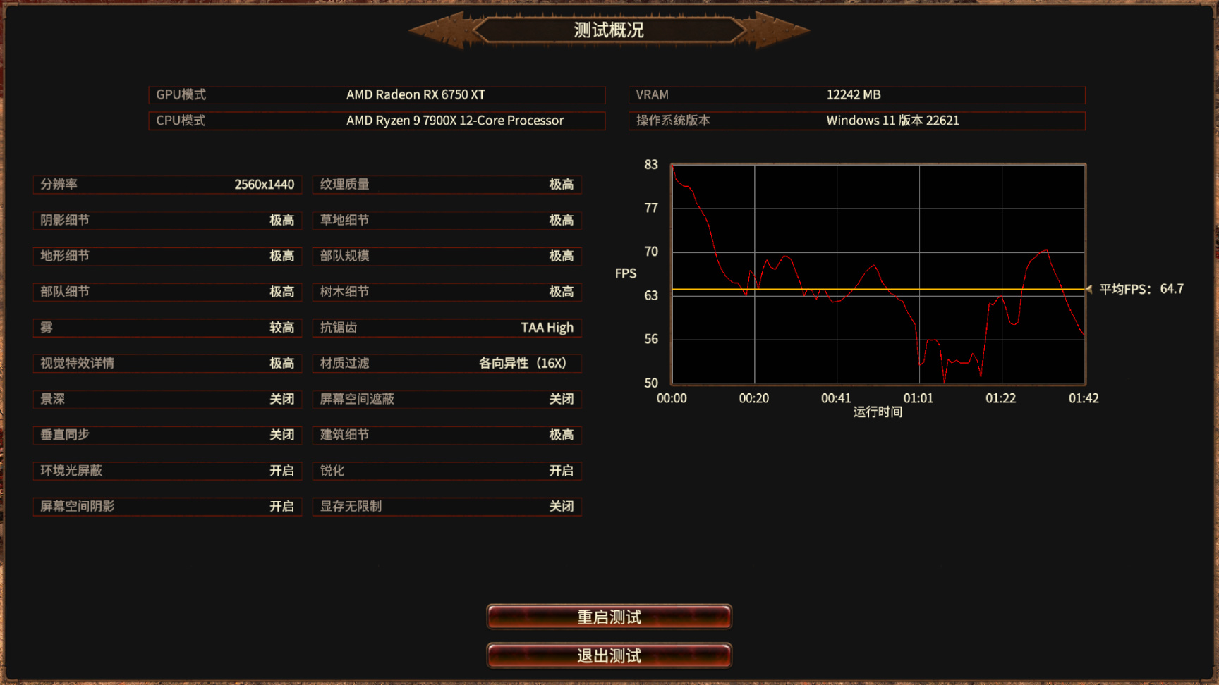平均64.7帧/秒,可以流畅的运行该游戏。