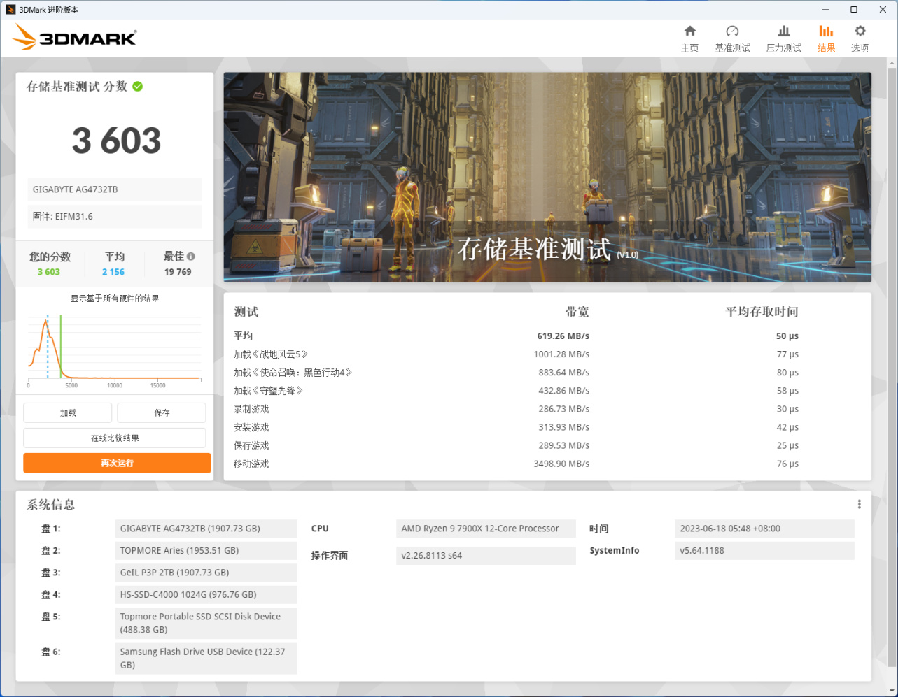 内存:朗科Z 6200MhzC32跑分约30/万硬盘:技嘉钛雕473跑分约32/万