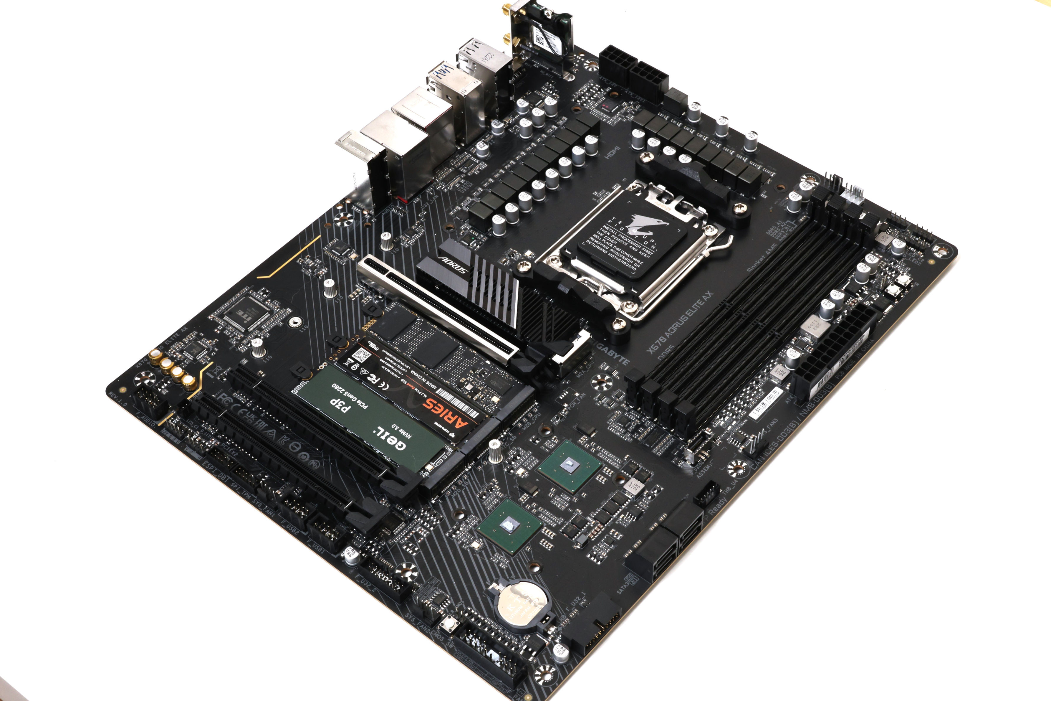 为了发挥出7900X的全部性能,索性一步到位选择了技嘉 X670 AORUS ELITE AX主板 ,该主板的定位为偏向于中高端ATX主板,拥有强悍的供电能力、散热性能与硬朗的外观设计,主板分量很重,表面有大面积的散热装甲覆盖,拿在手中可以感觉到用料非常扎实,而且在性能上DDR5内存、PCIE5.0协议的显卡、M2固态接口,WiFi 6E无线网卡和2.5G有线网卡这些基础硬指标一个都不少。