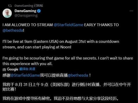 向贝塞斯达提出申请,并申请通过的主播可提前8小时游玩《星空》。