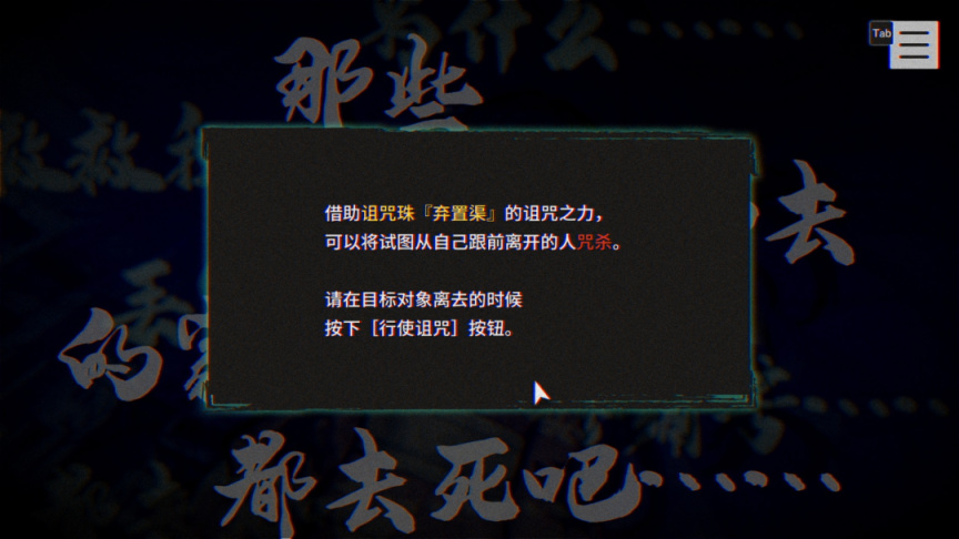 比如,玩家在“序章”中操作的興家彰吾在公園獲得的“棄置渠”詛咒珠,可以咒殺“離開自己的人”;