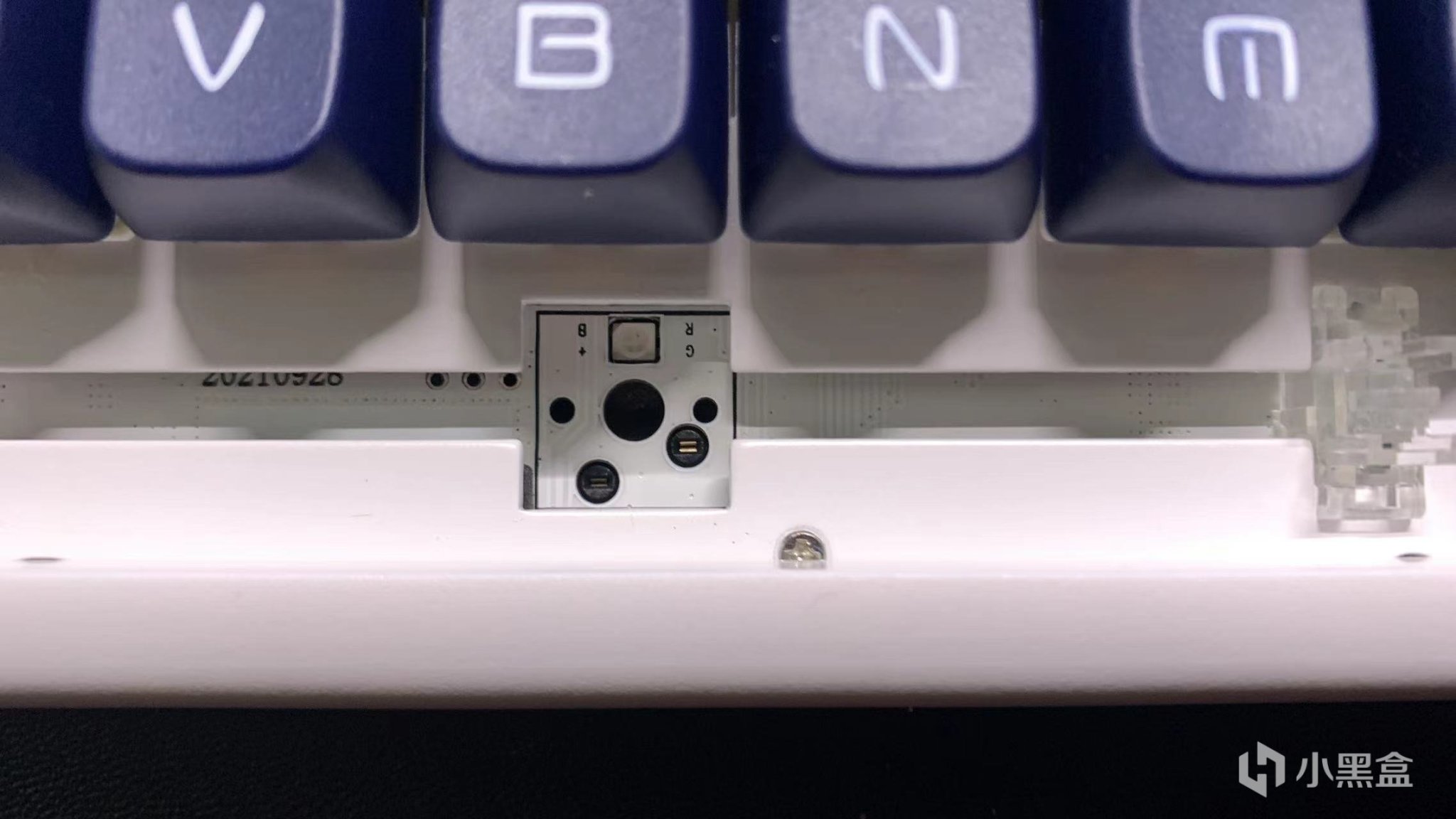 轴孔方面,我们可以看见这把键盘采用的是上灯位的设计,支持三角轴以及五角轴(部分光轴以及将电容轴等除外)