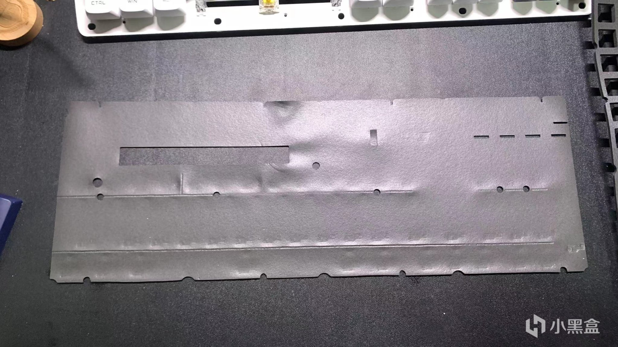 夹心棉,采用的是pron材质的,pron材质的夹心棉,有一个好处就是,消音效果不错,他会让键盘的整体声音变得闷闷的。