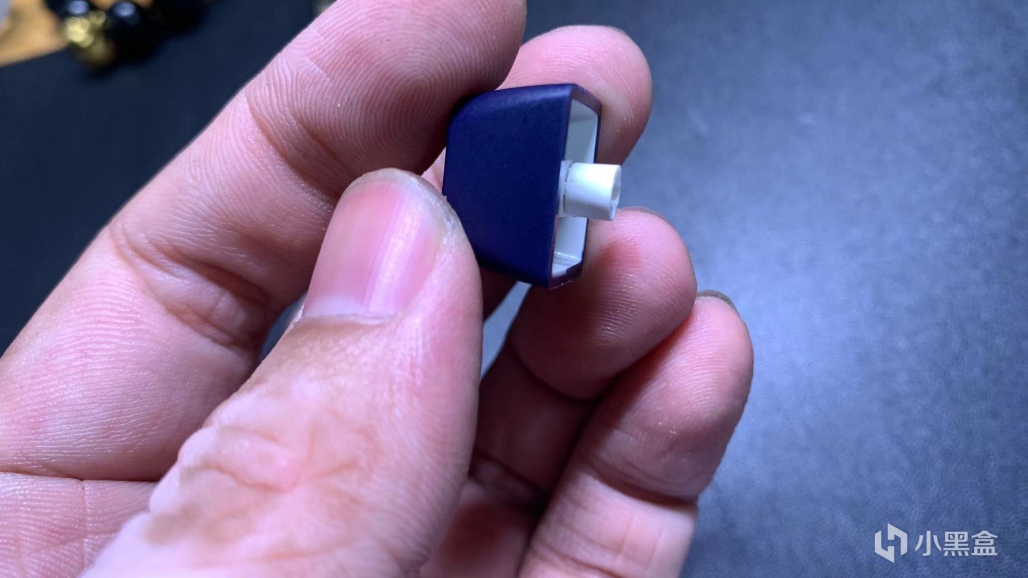 可以看见啊,键盘的F区其实很高,这是因为键帽的菊花处增加了一个延长器的功劳,但是因为有了延长器,所以他的缺点也显而易见,就是会导致整体的稳定性很差, 这里要注意一下。可以看见小键位的键帽其实水口处理的还不错。