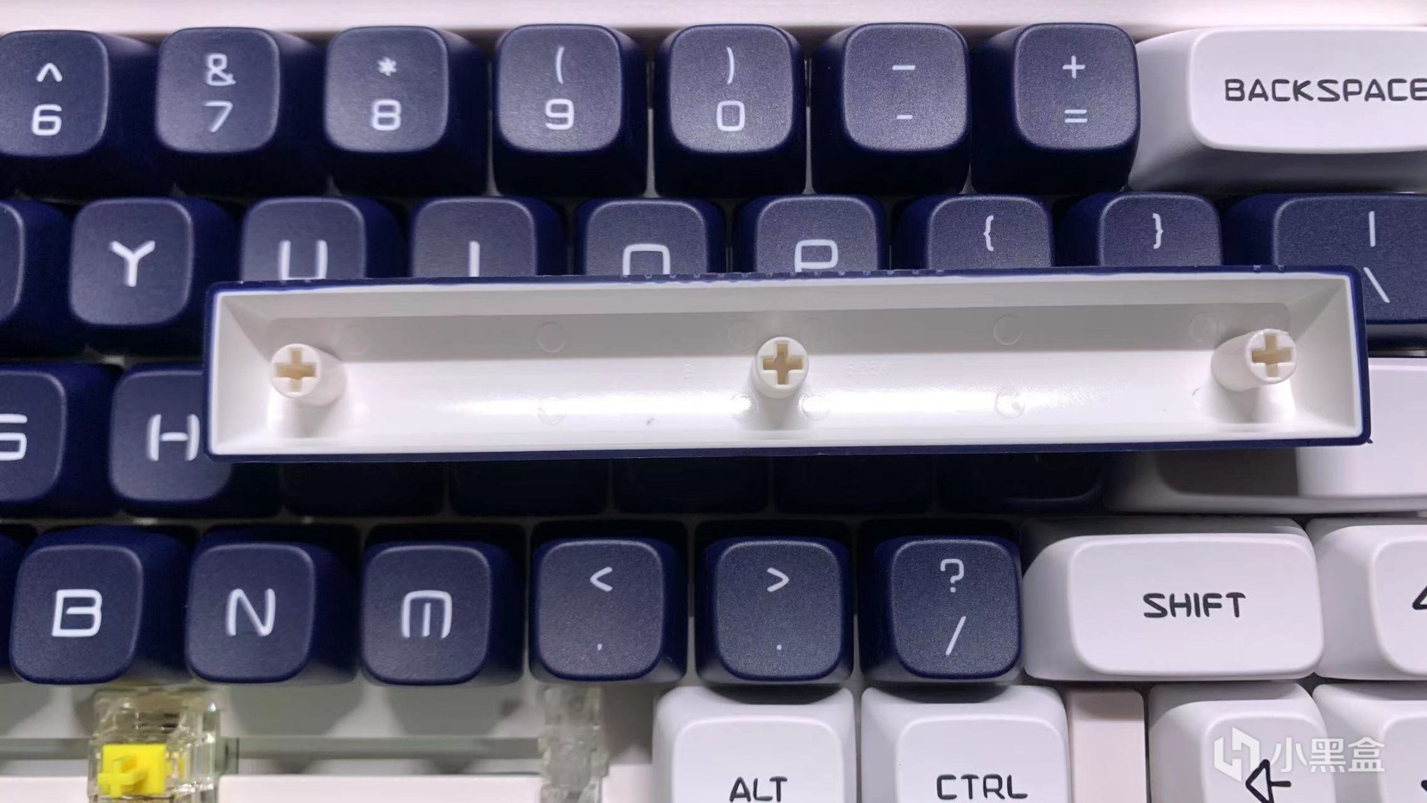 大键方面,空格处没有填充,这也导致了空格的声音较大,别看这把键盘的大键润滑很多,但其实他也是有钢丝音的,所以说,在大键调教的方面T98做的并不好。