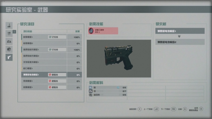 例如我要给武器加装配件,我得先花技能点学会“科学”分支的技能“武器工程学”,然后在“研究站”里花费材料研究对应的配件模块,接着再到“武器工作台”花费材料生产对应的配件。如果我要加装的是更高级的配件,还需要先按照上述循环花更多材料生产低级配件提升武器工程学的熟练度,花费技能点升高技能等级,并且在研究站再花费材料研究更高级的模块,才能生产出高级配件。