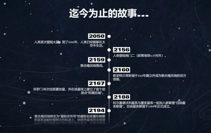 到了公元 2330 年,凭借成熟的重力跃迁技术,人类的星际殖民已经扩张到几乎整个已知的宇宙,跨恒星系的旅行就像现在我们坐飞机出国一样普遍。这是个相对和平的年代,但宇宙之大,混乱与冲突也并不罕见。本作的故事,就从这个时刻开始。