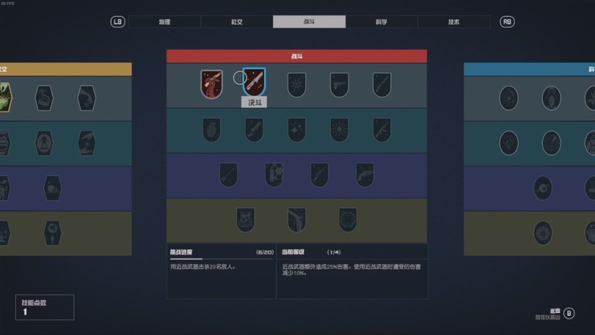 《星空》的技能系统中总共有“物理/社交/战斗/科学/技术”5 大类、合计 82 项技能,每项技能又分为 4 个等级。这些技能涵盖了游戏中所有活动,使用不同武器都有相关的技能、驾驶飞船也有相关的技能、操控飞船不同武器系统又有相关的技能,角色体能、勘探星球、研究武器装备和药物、哨站经营,都有各自的相关技能。