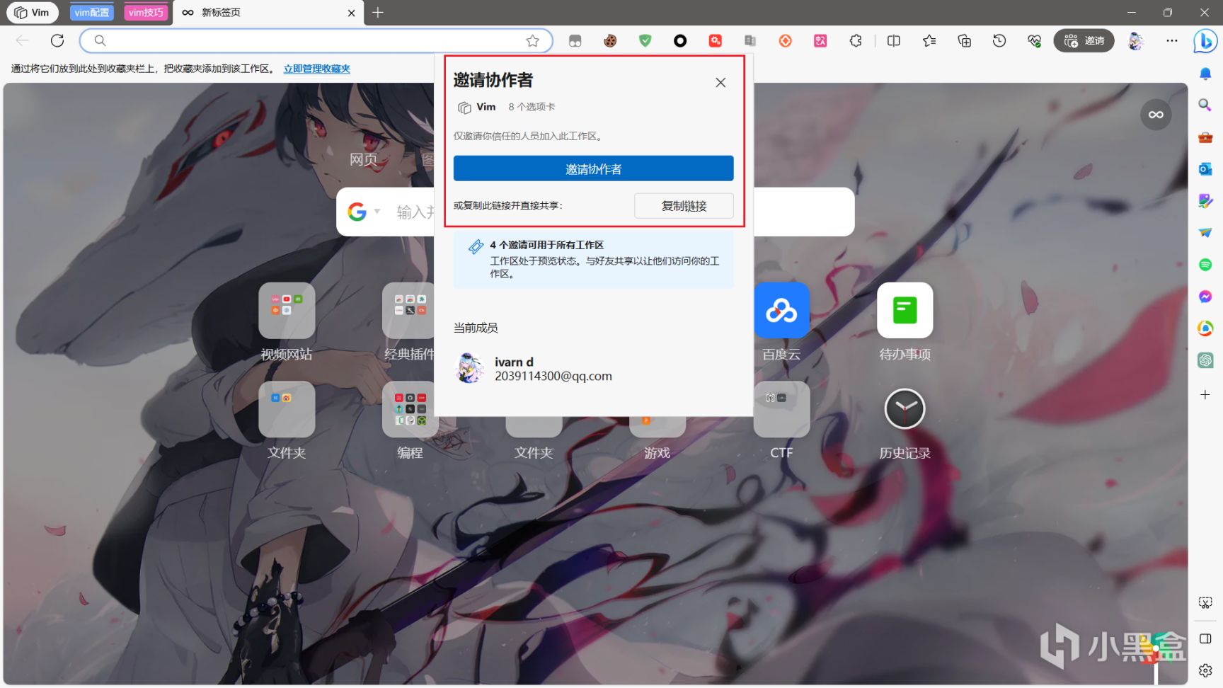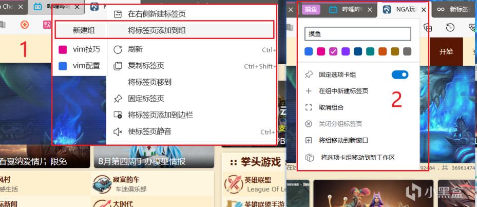 選擇兩三個網頁右鍵,有個將標籤頁添加到組然後進行添加 在工作區中搭配這個功能,可以有效的區分你瀏覽的網頁,例如摸魚組,視頻組,具體留給大家想象