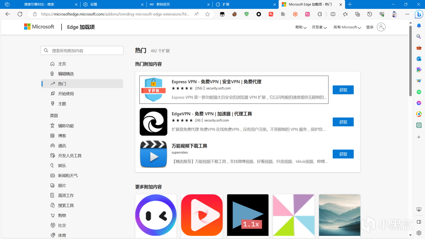 瀏覽器沒有擴展是沒有靈魂的! 微軟的擴展不需要翻牆,可以直接獲取擴展,非常方便,但是如果加上擴展,這篇文章有點長,所以擴展分爲下期。
