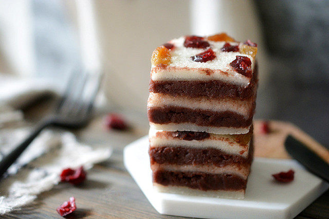 最后,还是得说说重阳节的传统吃食,虽然不如粽子、月饼那么广为人知,但是重阳糕看着还是很好吃的样子(石头其实也没吃过)。重阳糕又称花糕、菊糕、五色糕,制无定法,较为随意。制作较为讲究的重阳糕要作成九层,像座宝塔,上面还做成两只小羊,以符合重阳(羊)之义。有的还在重阳糕上插一小红纸旗代替插茱萸的习俗,而“吃糕”本身也有代替“登高”习俗的意思。不过石头确实没找到九层的重阳糕.....