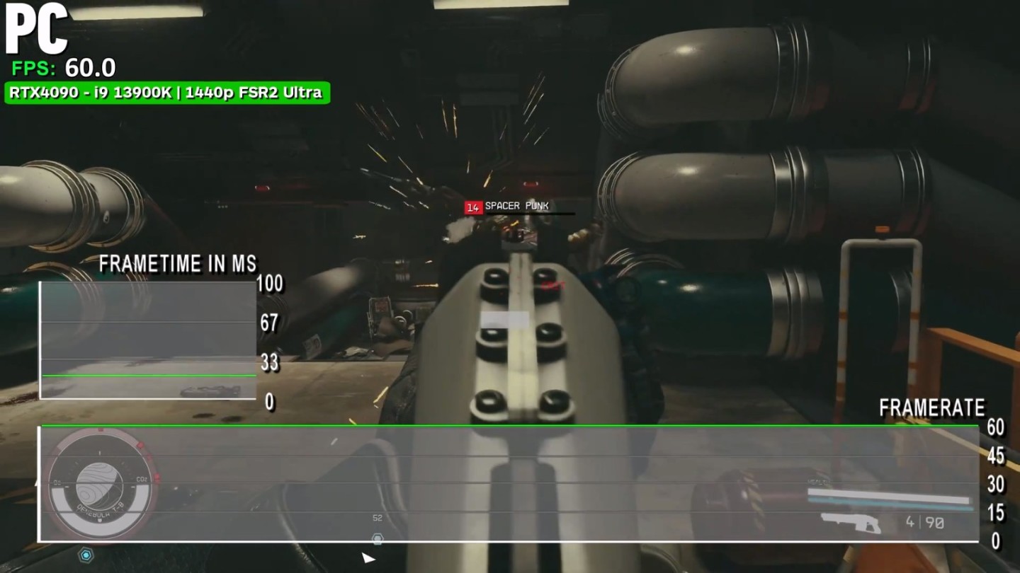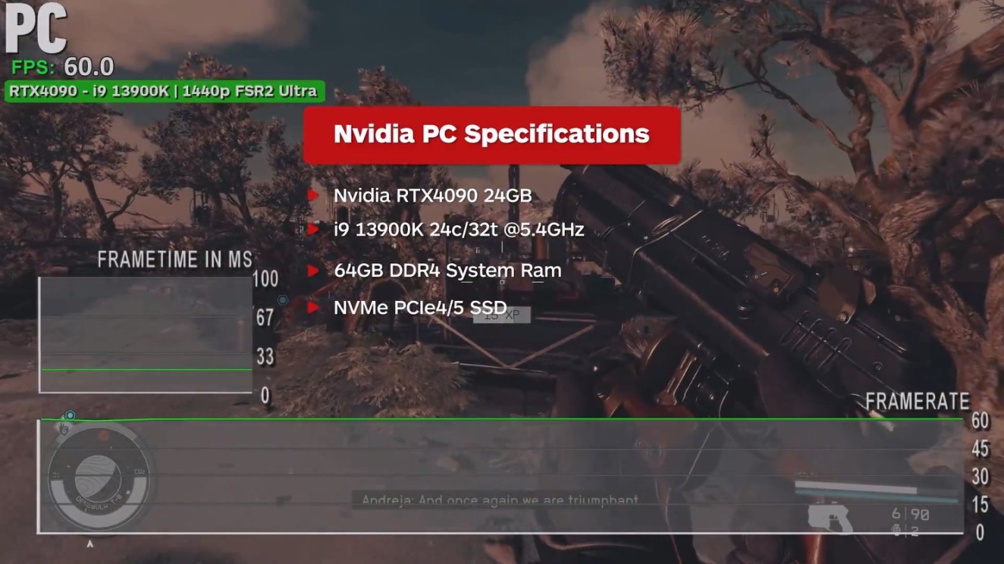 - 而在搭载N卡旗舰RTX 4090+i9 13900K的PC上,以2K分辨率、开启FSR 2.0和最高画质设置下,游戏能够稳定运行在60FPS。