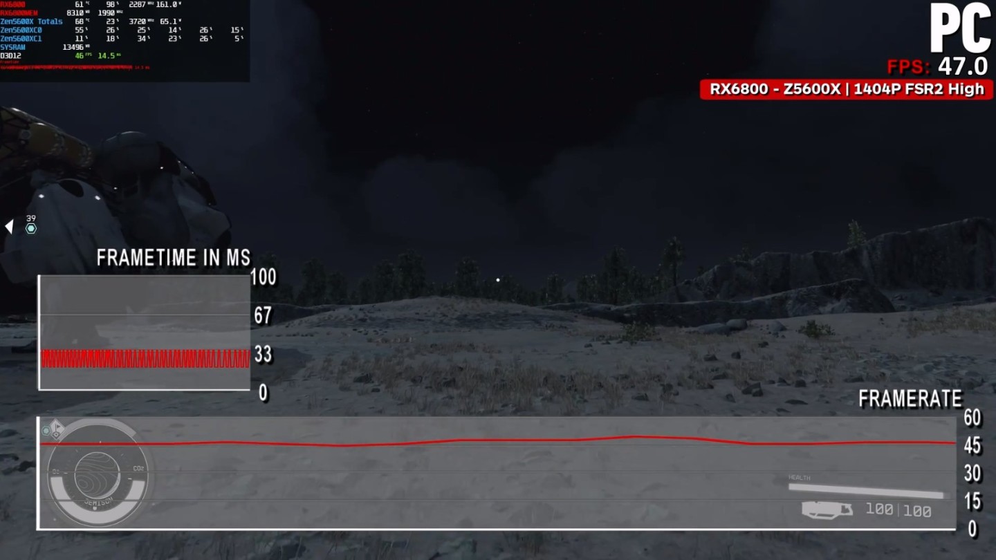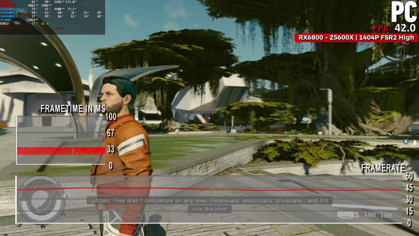 - 在搭载RX 6800+锐龙5600X的PC上,以2K分辨率、开启FSR 2.0和高画质设置下,帧率维持在40FPS左右。