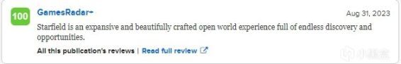 GamesRadar+满分指出:《星空》是一个广阔而精美的开放世界,充满了无尽的探索和机遇。」
