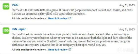 VGC 满分快评本做是Bethesda 的终极之作,「继承人们对《辐射》和《上古卷轴》的喜好,并将其投射到充满迷人角色的巨大星系中。」