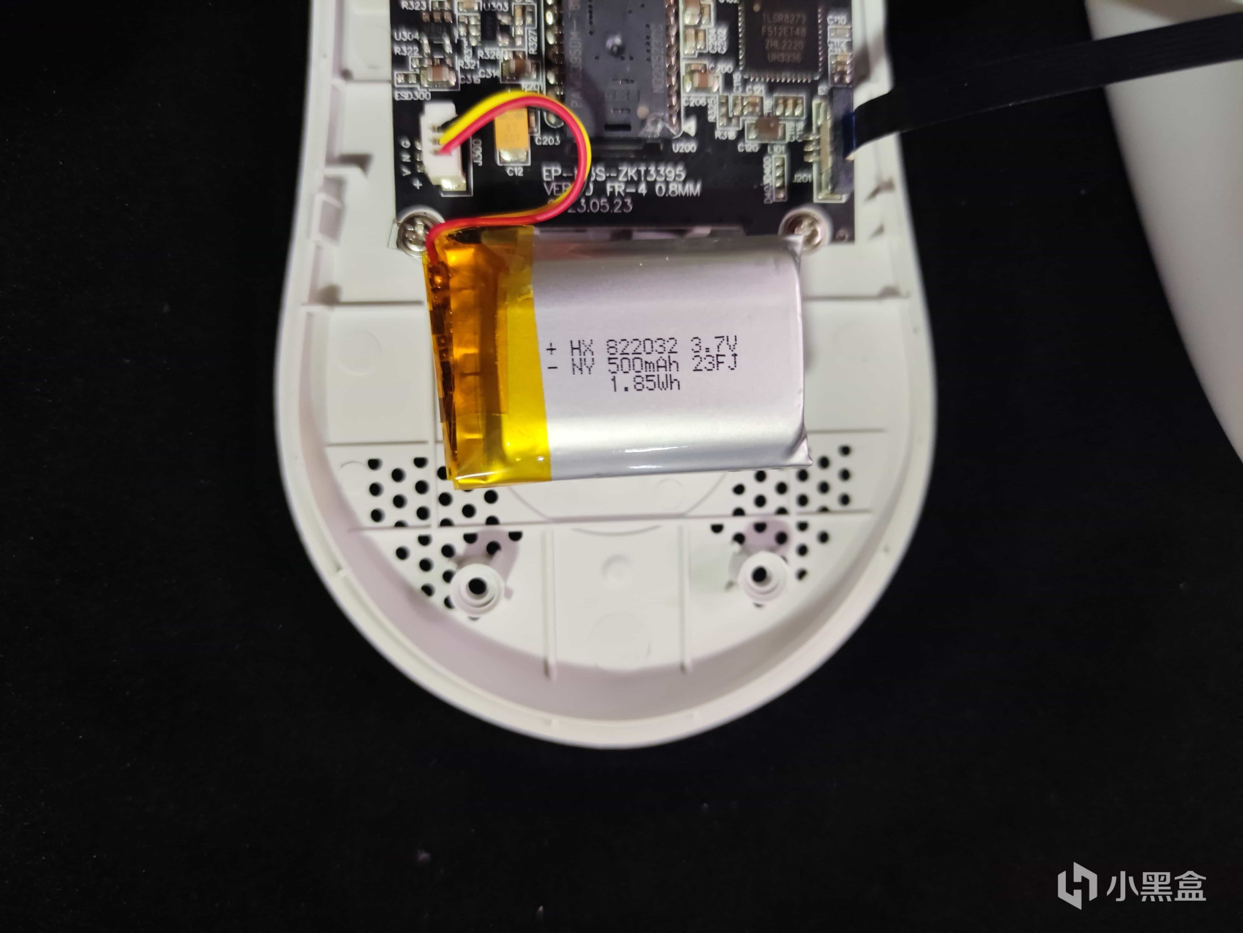 可以看到鼠標是一個500mAh的電池,官方說2k續航在80小時左右。