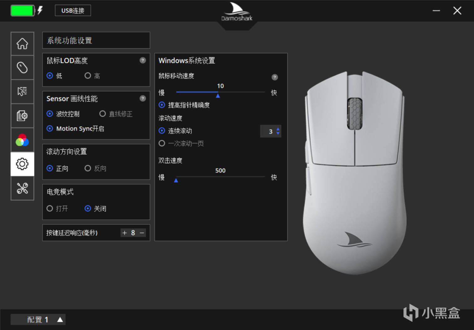 鼠標在官方即可下載驅動,驅動中大部分都是十分常見的設計,值得一提的是增加了一個電競模式,據說是可以降低延遲,但是會增加耗電量。