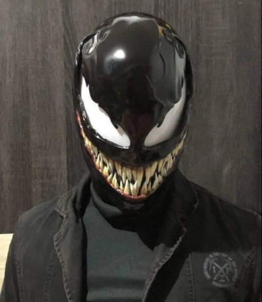 這款頭盔設計比較有趣的地方是毒液的嘴部設計,有張嘴的可動,張嘴的部分正好是頭盔的透明部分。