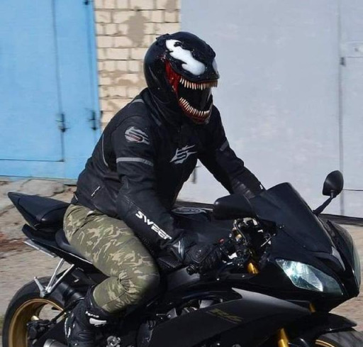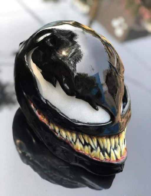 毒液是很多模友喜歡的漫威系列角色,外形雖然看起來恐怖但是比較搞笑,模友將毒液的頭部造型移植到了摩托車頭盔上,戴在頭上看起來十分酷炫,戴着這麼帥氣的頭盔出門,絕對會成爲這條街最帥的仔!