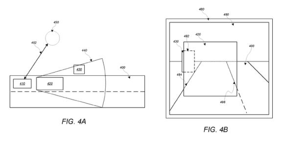 该专利表明,苹果的AR系统将依赖于各种传感器来收集关于周围环境的信息。这可能包括可见光摄像机、各种类型的红外摄像机,以及超声和基于光的扫描设备,用于构建汽车周围环境的三维图像。专利还提到地理定位设备和雷达设备是其技术的关键。