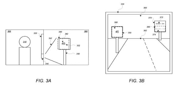 专利还探讨了更多创意的想法。专利中的一个示例建议,如果检测到驾驶员驾驶速度过快,AR系统可以在环境中显示模拟的减速带。这将鼓励驾驶员减速。为了完成这个效果,AR系统可以与汽车的主动悬挂系统合作,创造出经过减速带或隆隆声带的感觉。另一个概念涉及AR系统检测到某个区域有“儿童”,并使用这些信息来帮助叠加数据,指示这个区域可能是一个学校区域。